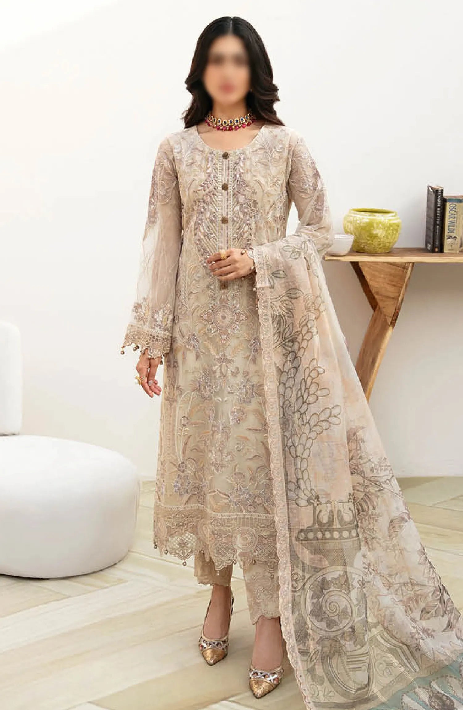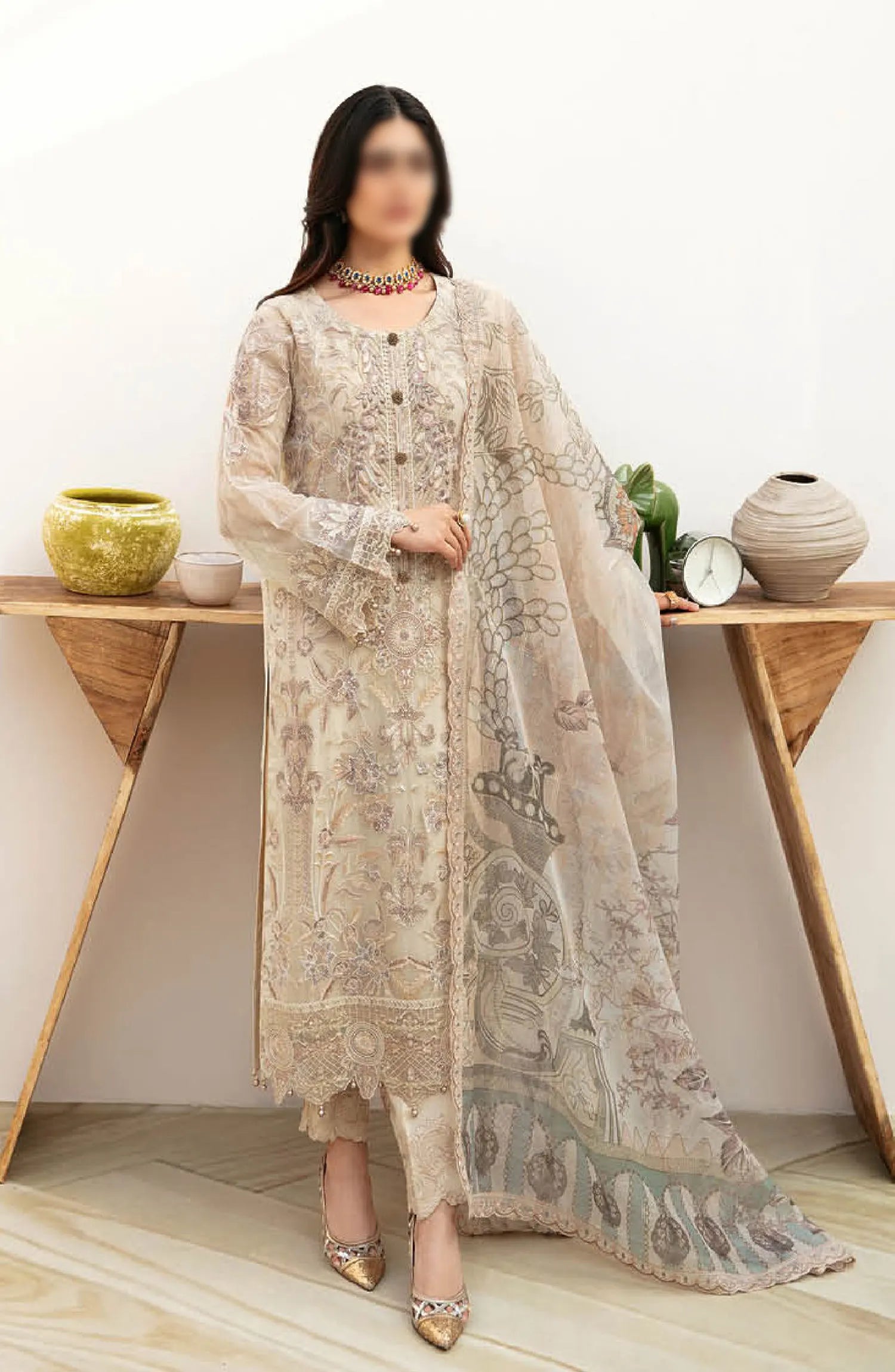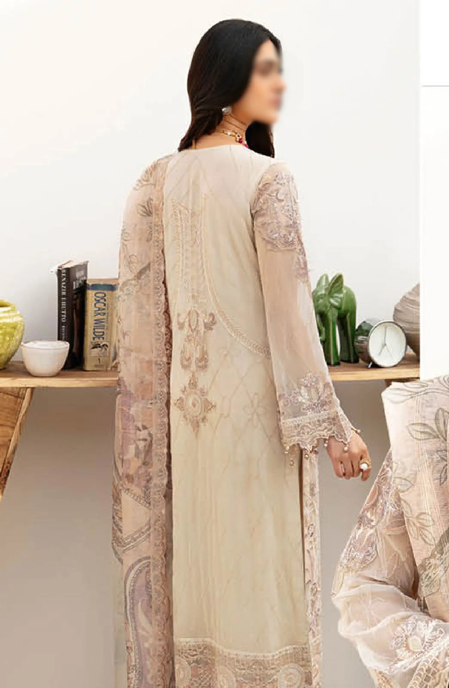 Ramsha Chevron Chiffon Collection Vol 08 has been styled in the image for photography and illustrative purposes.