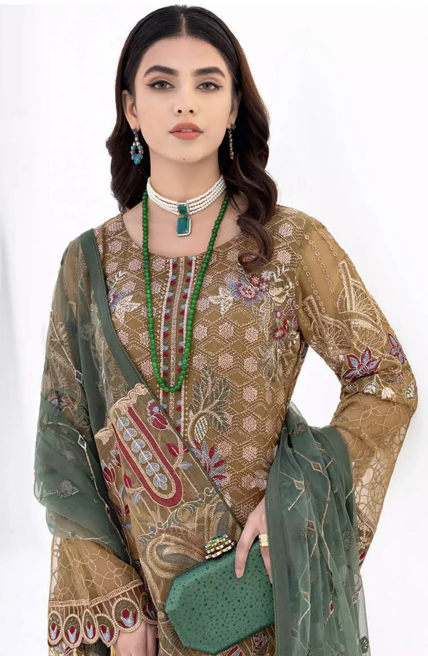 Maryams Luxury Embroidered Net Unstitched 3 Piece Suit - Eiraam-ARZ-8003 - MAR25LF - Fawn - Festive Collection