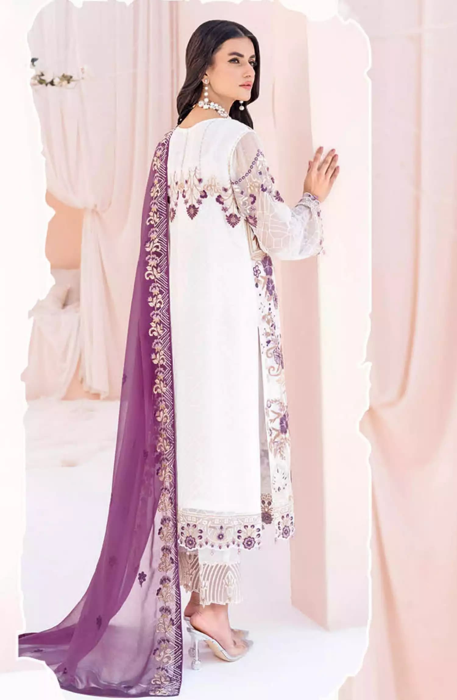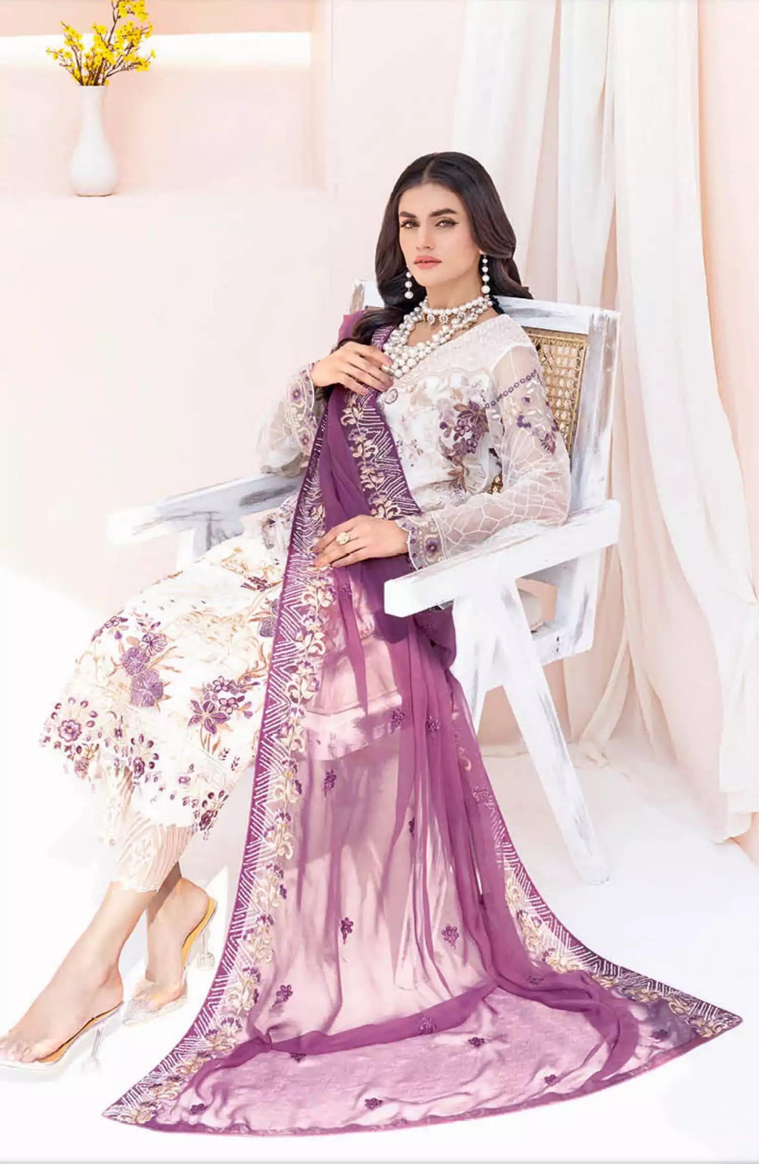 Maryams Luxury Embroidered Chiffon Unstitched 3 Piece Suit - ANUSHEH-ARZ-9007 - MAR25LF - White - Festive Collection