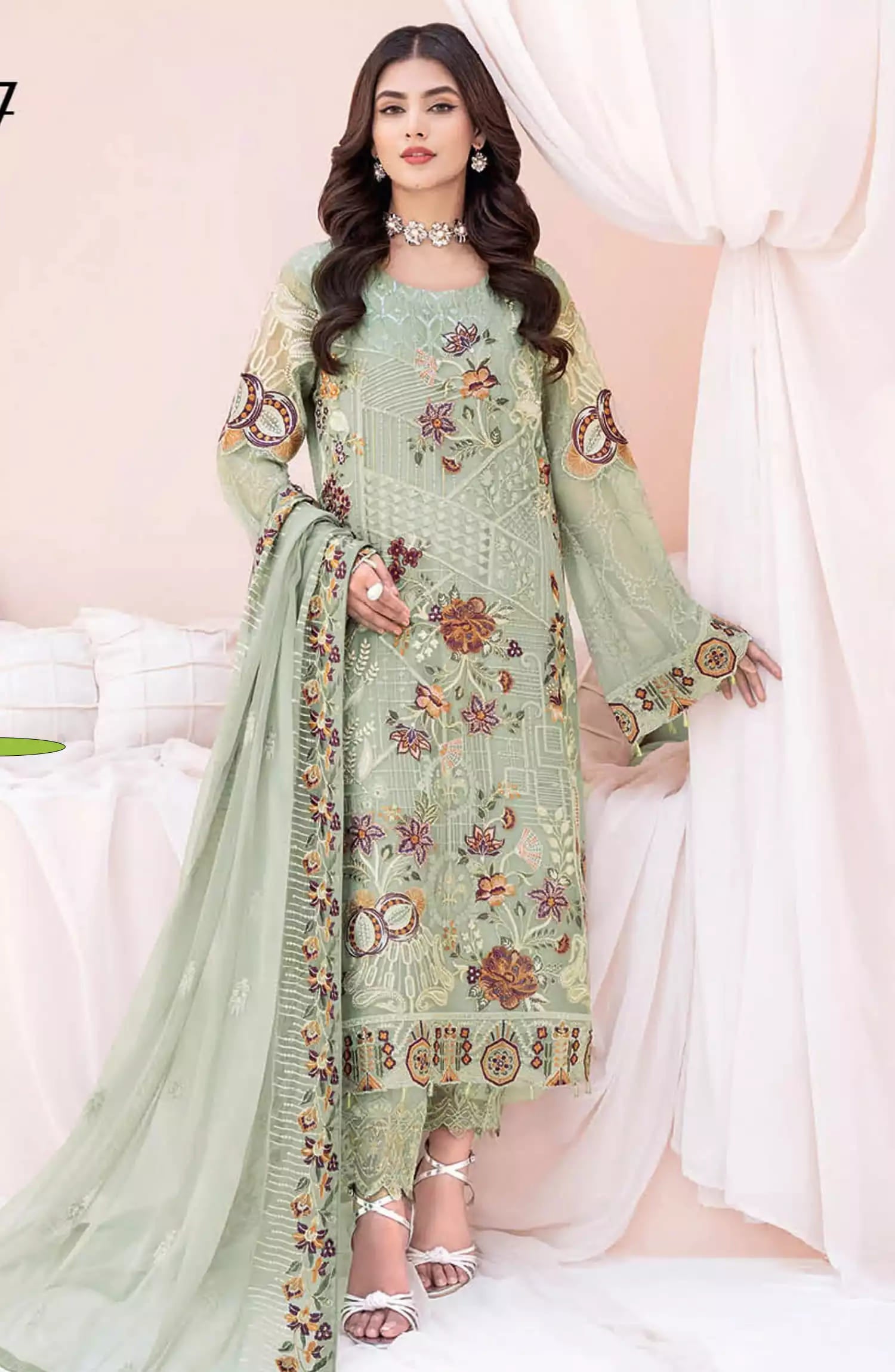 3 Piece | All Categories Women | Chiffon Collection | Hot Sellers | Luxury Formal | New Arrival | Ramsha | Ramsha Chevron Luxury Chiffon Collection Vol 06 | Ramsha Chiffon Collection | Shop by Color Green | Shop by Season All Seasons | Shop by Style Unstitched | Unstitched | Unstitched Collections | Unstitched Festive wear | Upto 20% Discount | Women