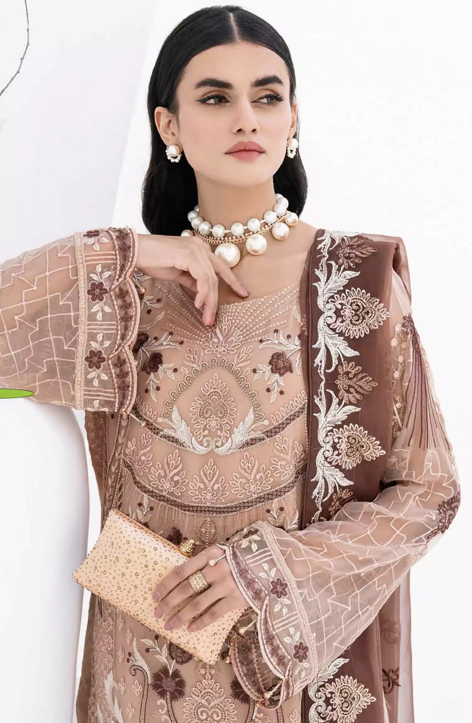 Ramsha Chevron Luxury Chiffon Collection Vol 06 has been styled in the image for photography and illustrative purposes.