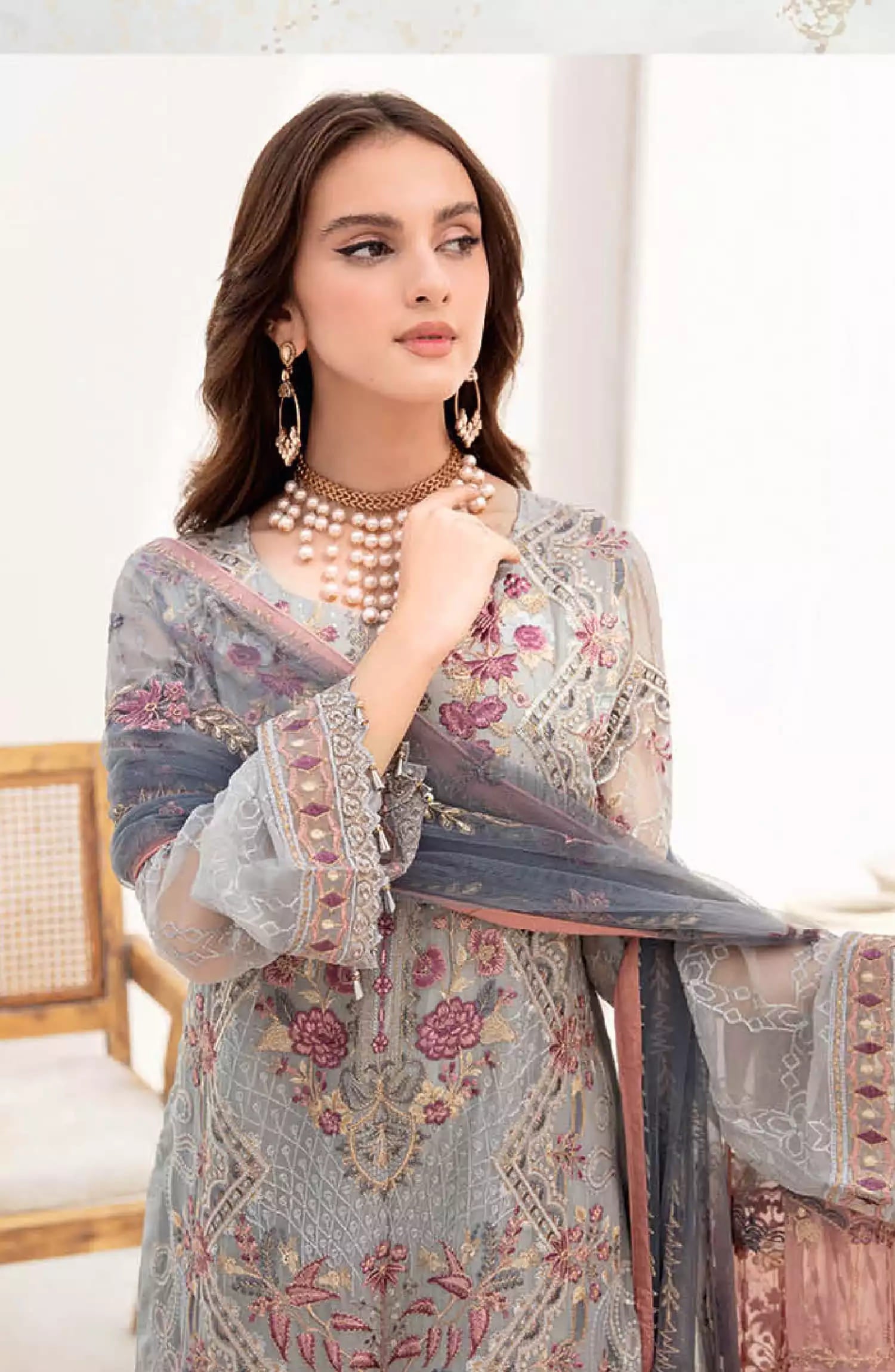 Ramsha Chevron Luxury Chiffon Collection Vol 07 has been styled in the image for photography and illustrative purposes.