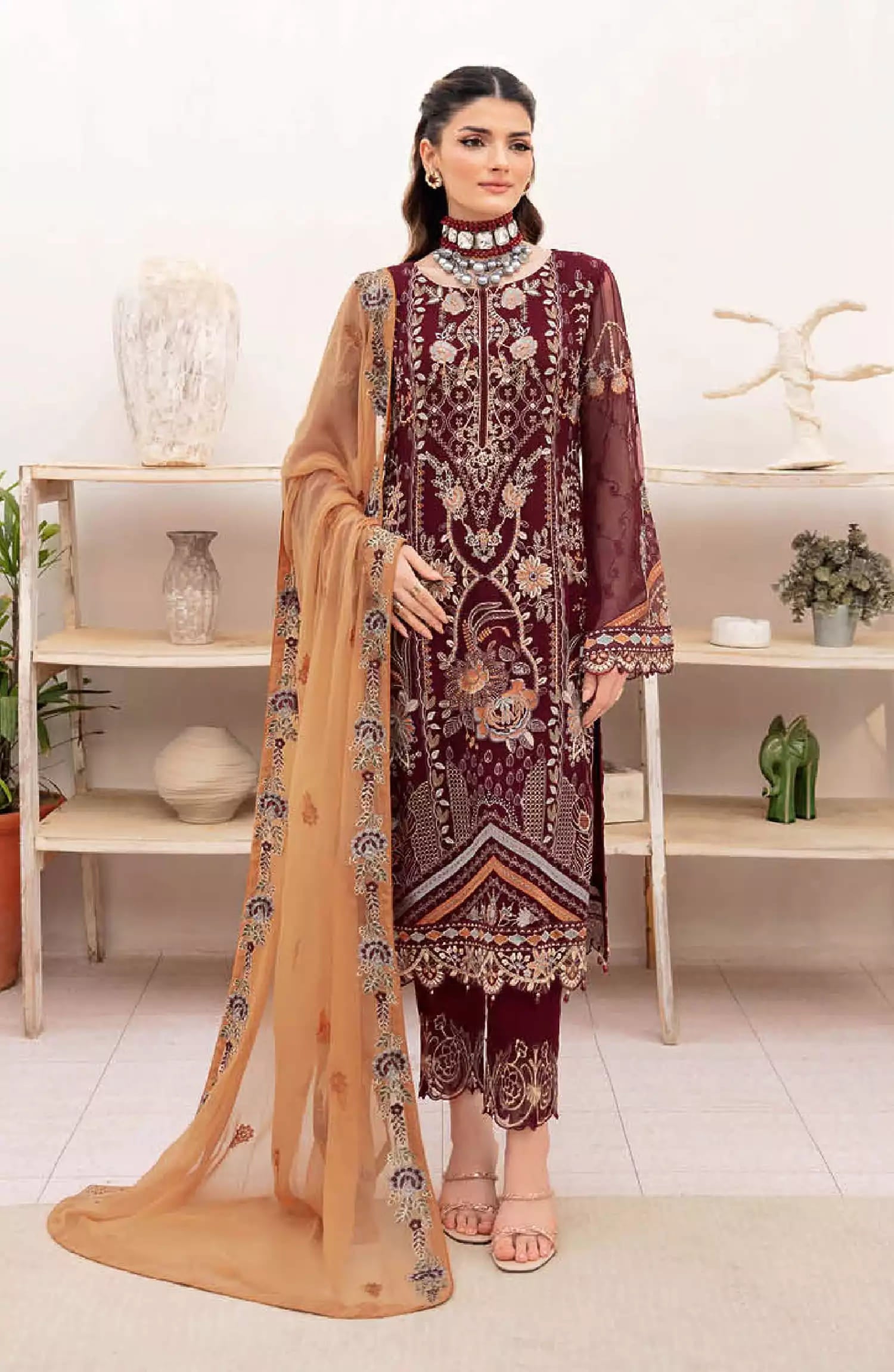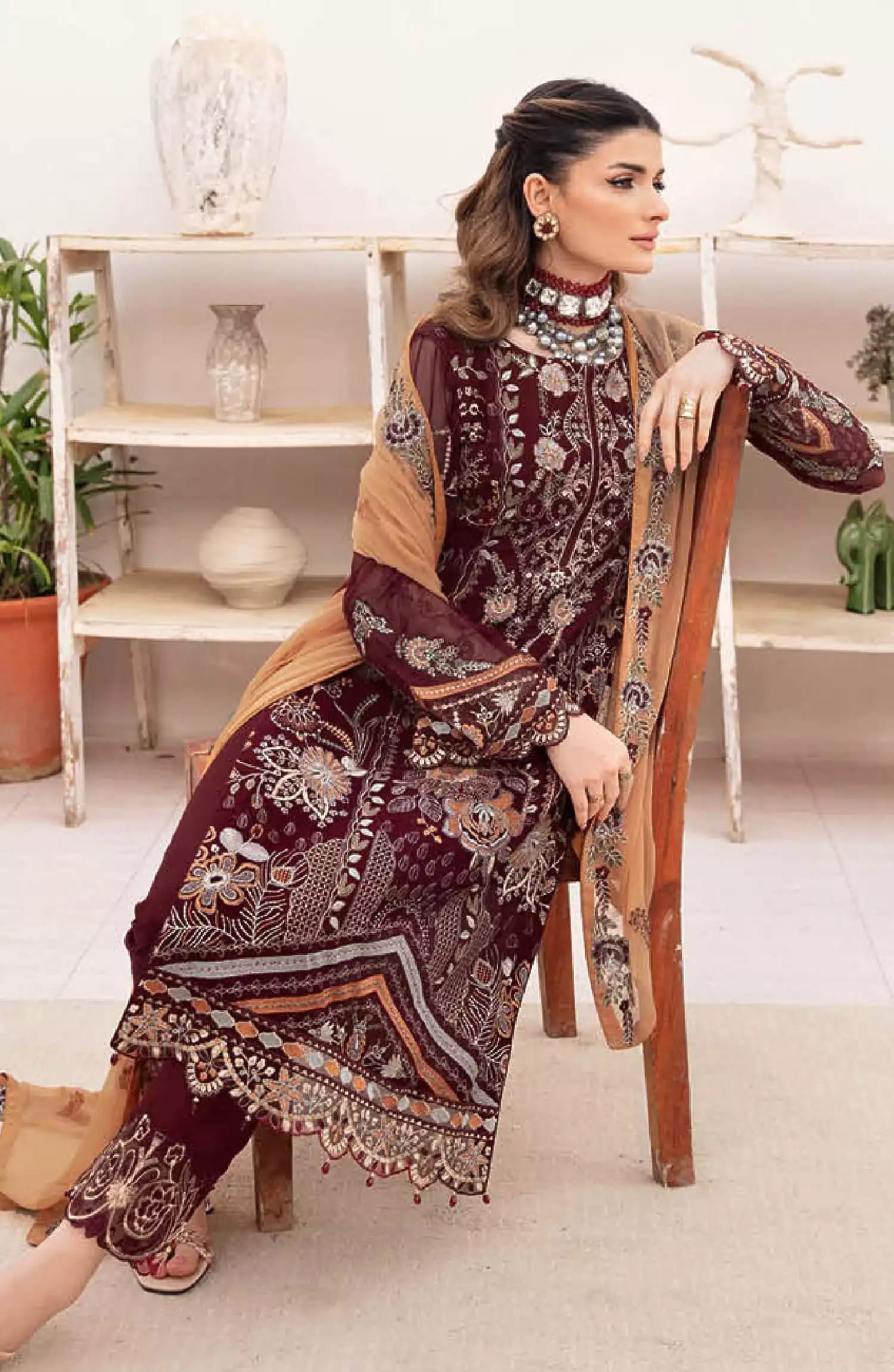 Ramsha Chevron Luxury Chiffon Collection Vol 07 has been styled in the image for photography and illustrative purposes.