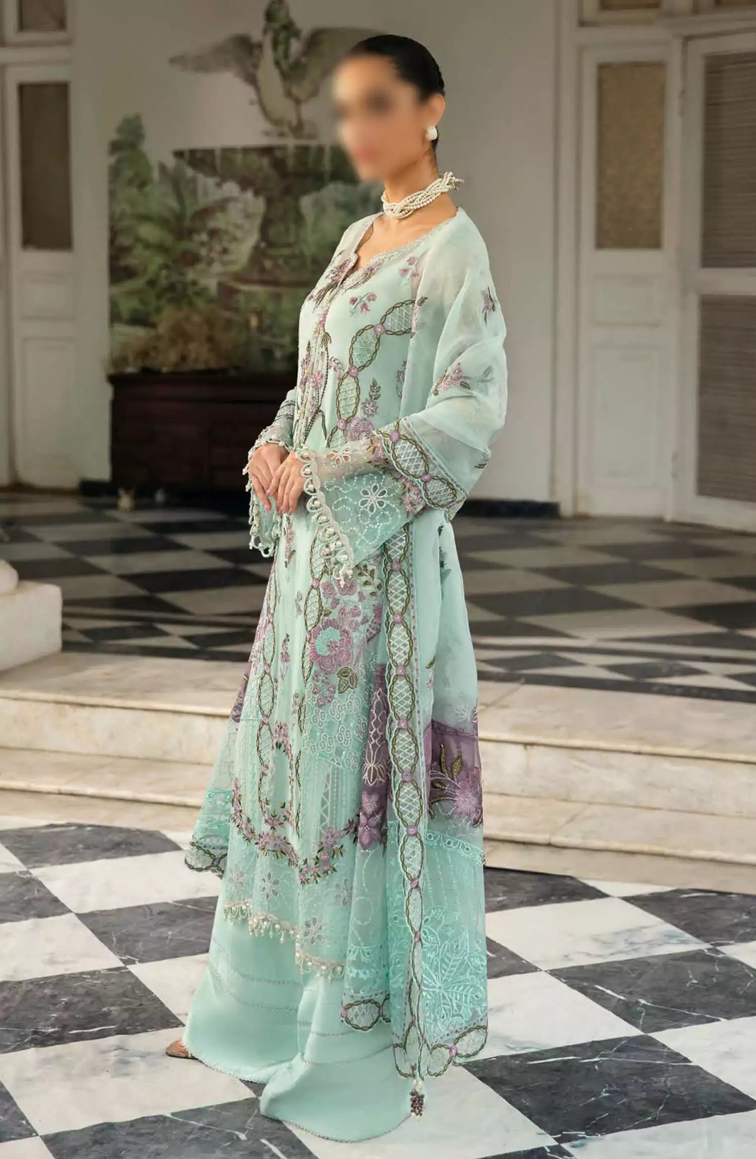 Ramsha Dastak Luxury Chiffon Collection has been styled in the image for photography and illustrative purposes.