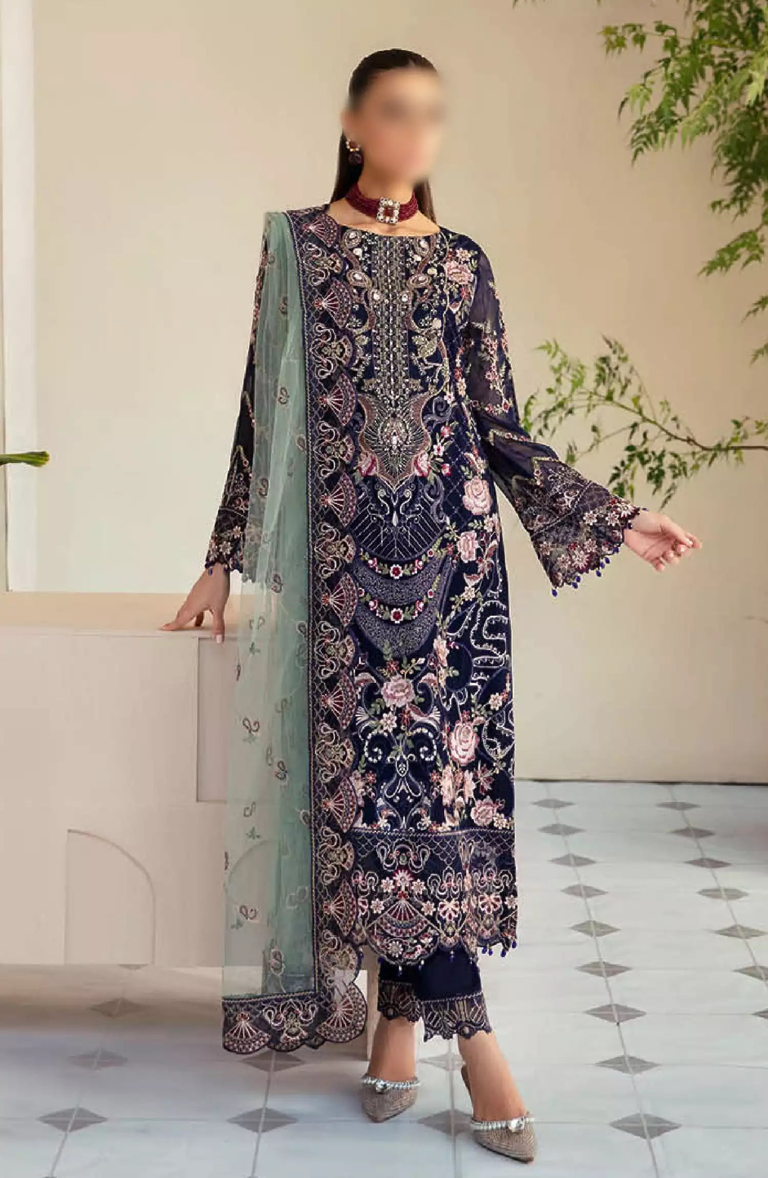 Ramsha Dastoor Chiffon Collection Vol 01 has been styled in the image for photography and illustrative purposes.