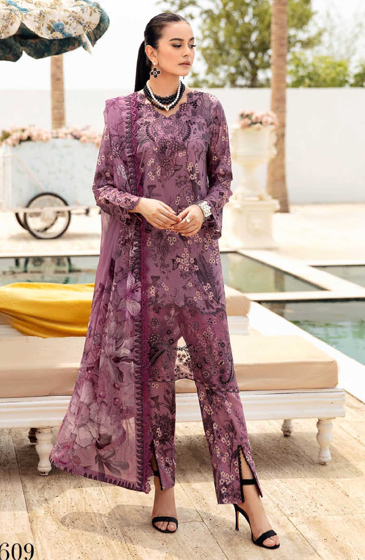Home Ramsha Embroidered Lawn Unstitched 3 Piece - N-609 - R25LL - Purple - Summer Collection