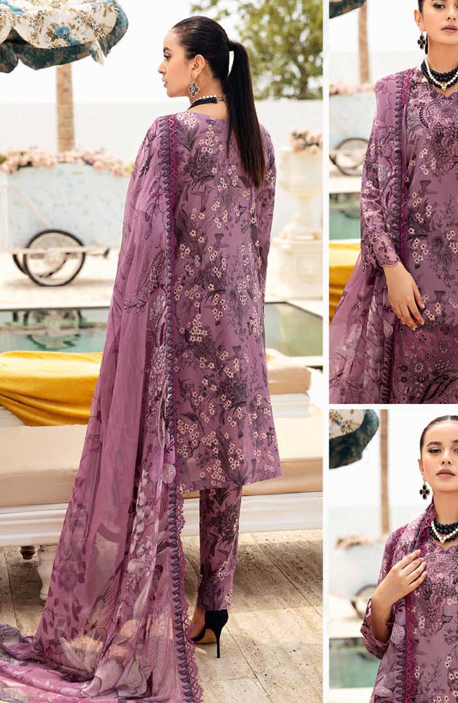 Ramsha Rangrez Luxury Lawn Collection Vol 06 has been styled in the image for photography and illustrative purposes.