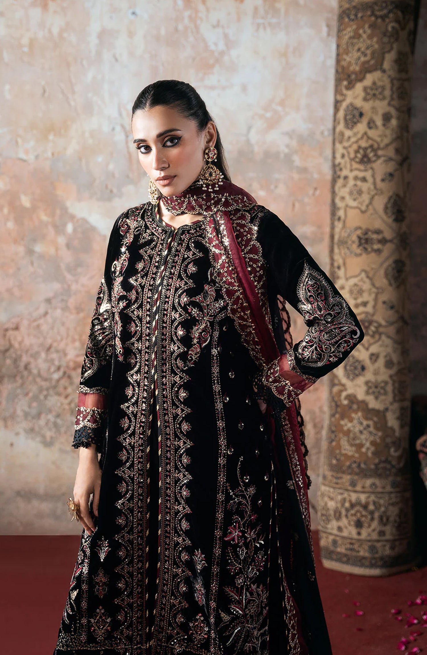 Velvet Embroidered Sleeves with Siquence