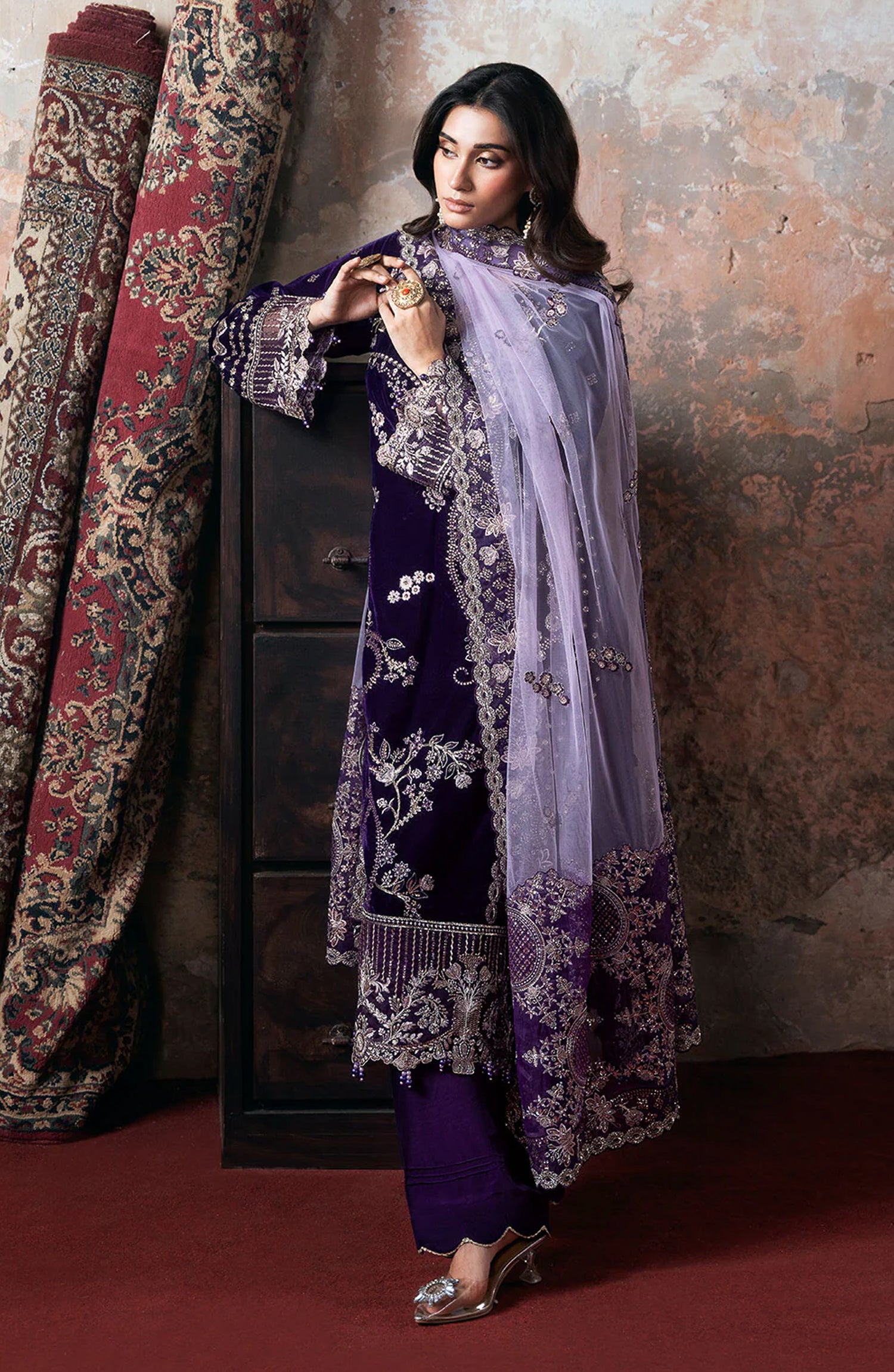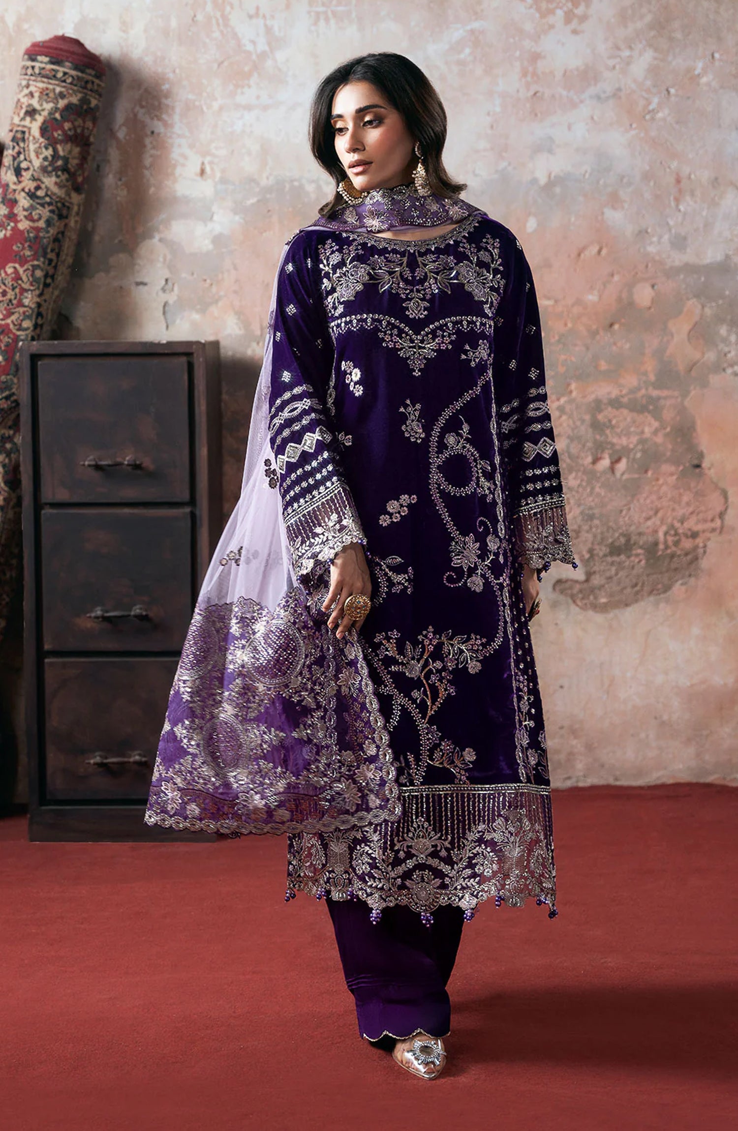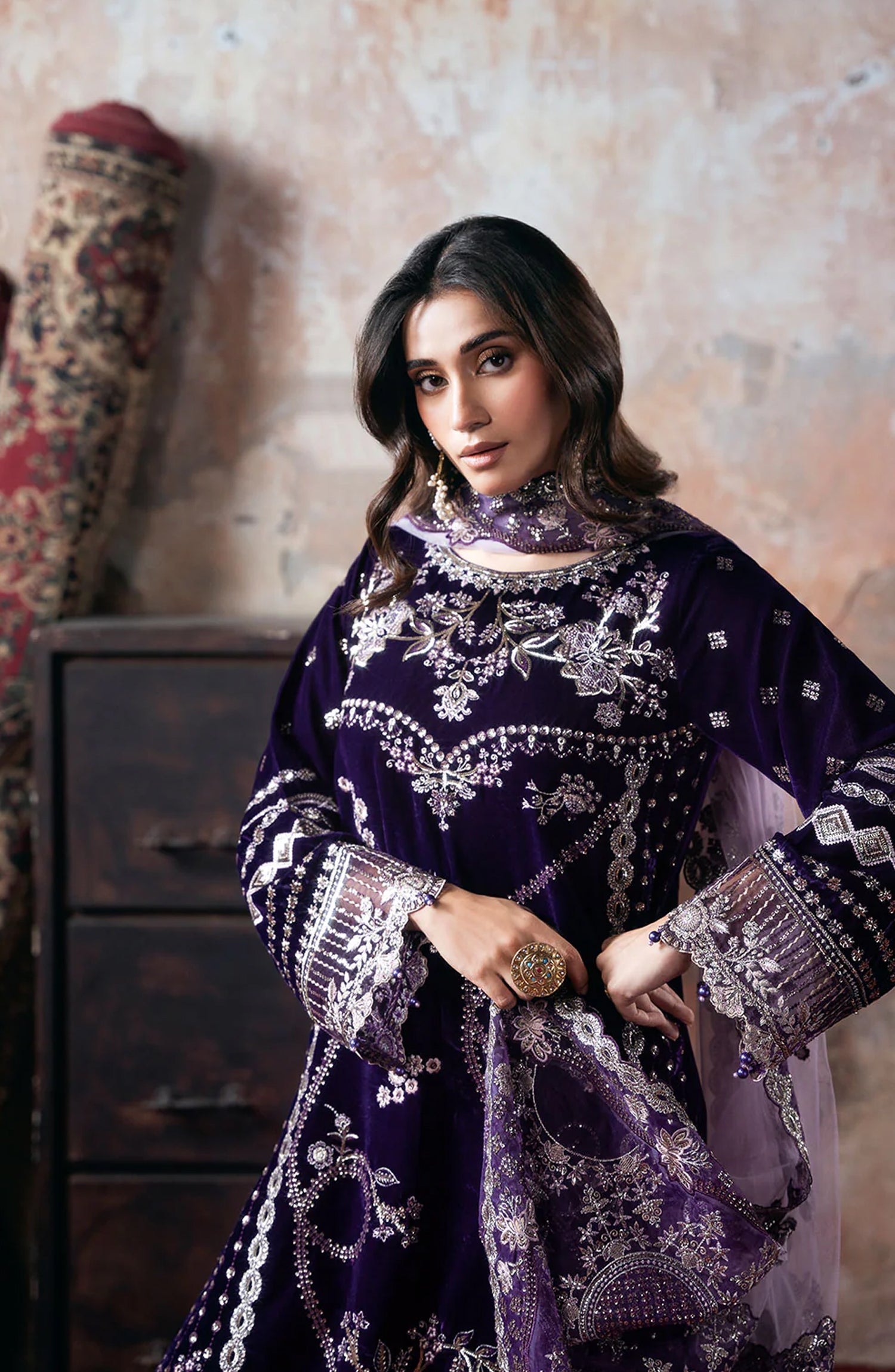 Velvet Embroidered Front with Siquence