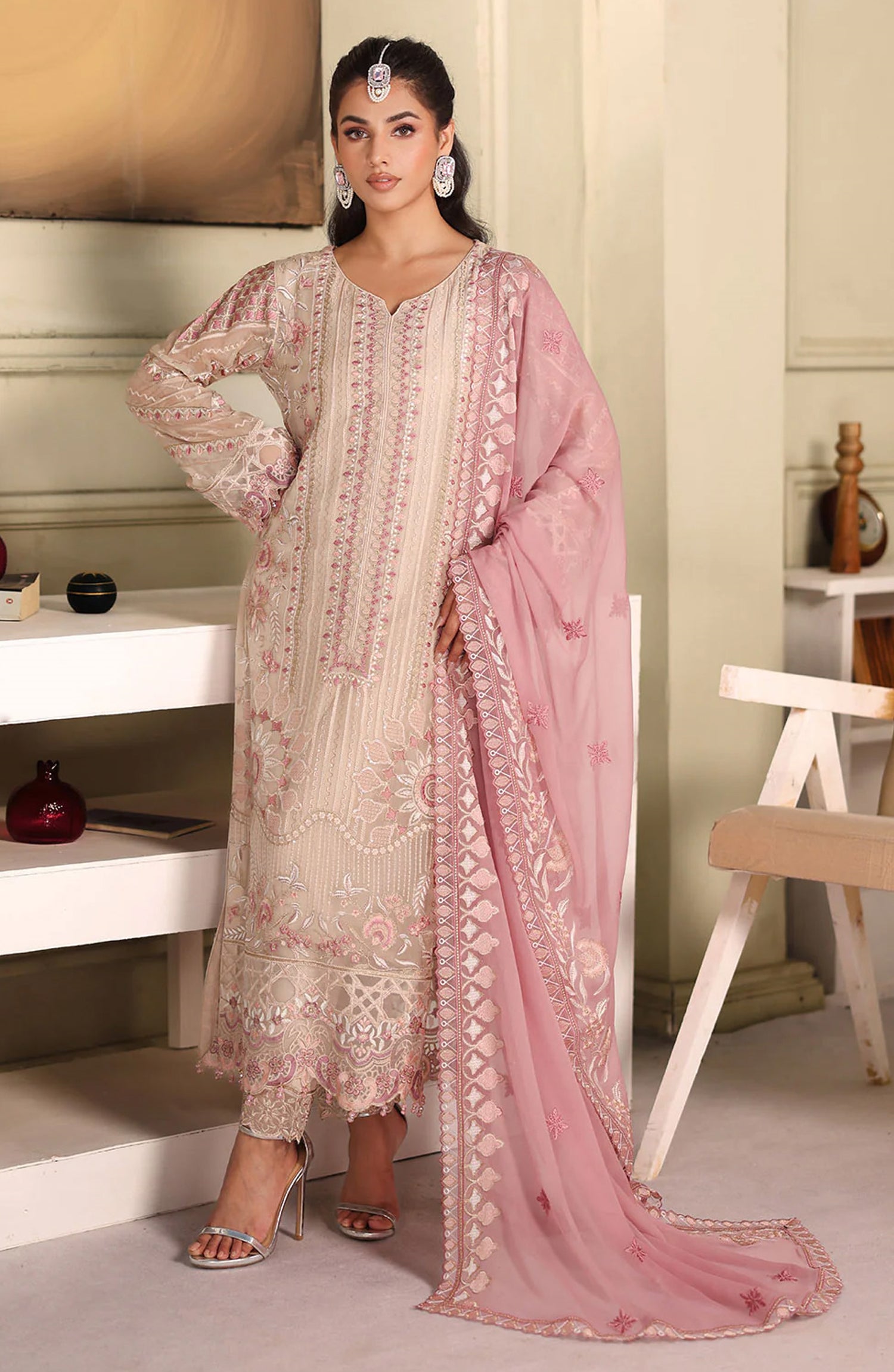 Luxury Formals Embroidered Chiffon Stitched 3 Piece Suit