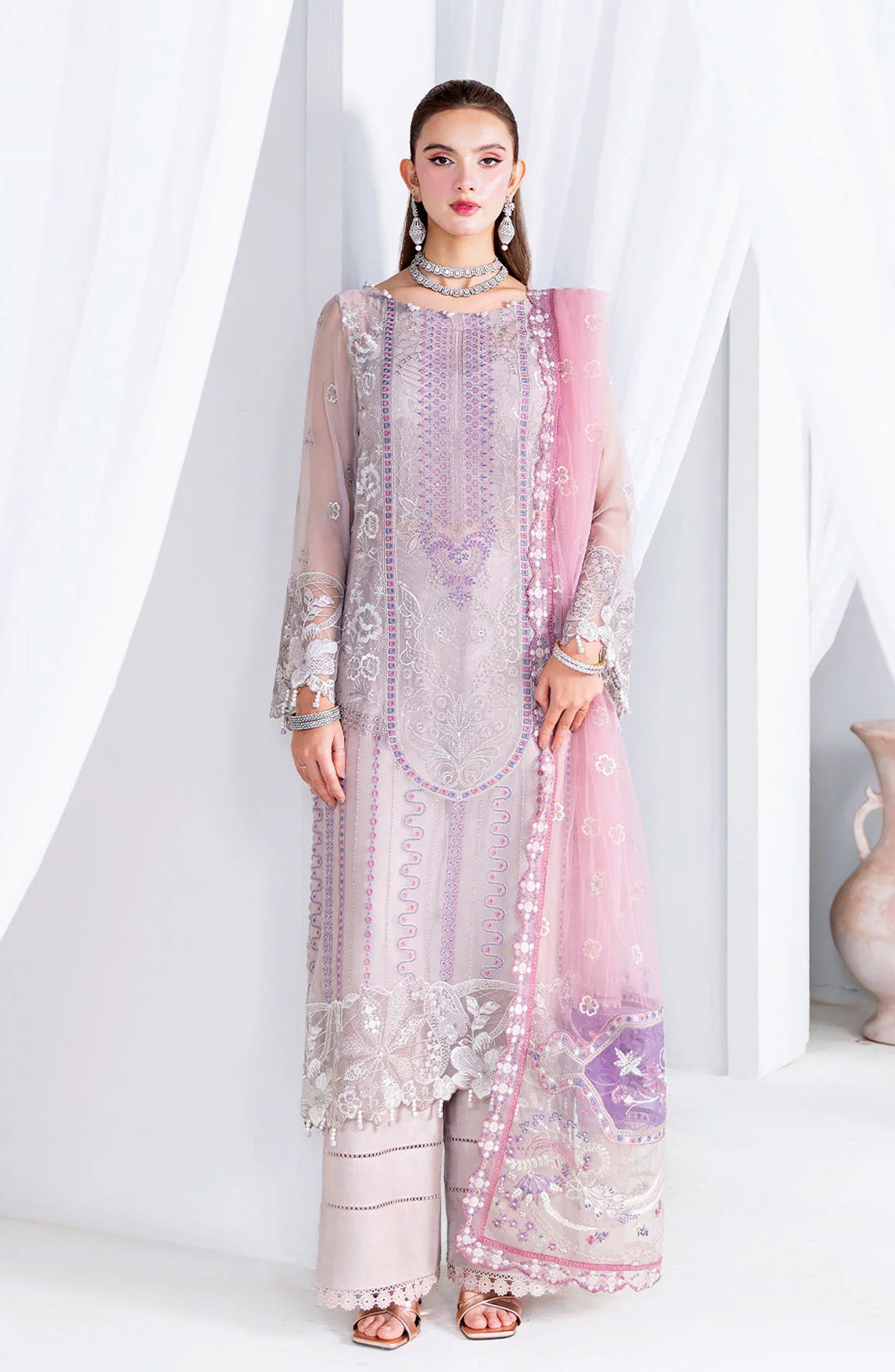 Luxury Formals Embroidered Chiffon Stitched 3 Piece Suit