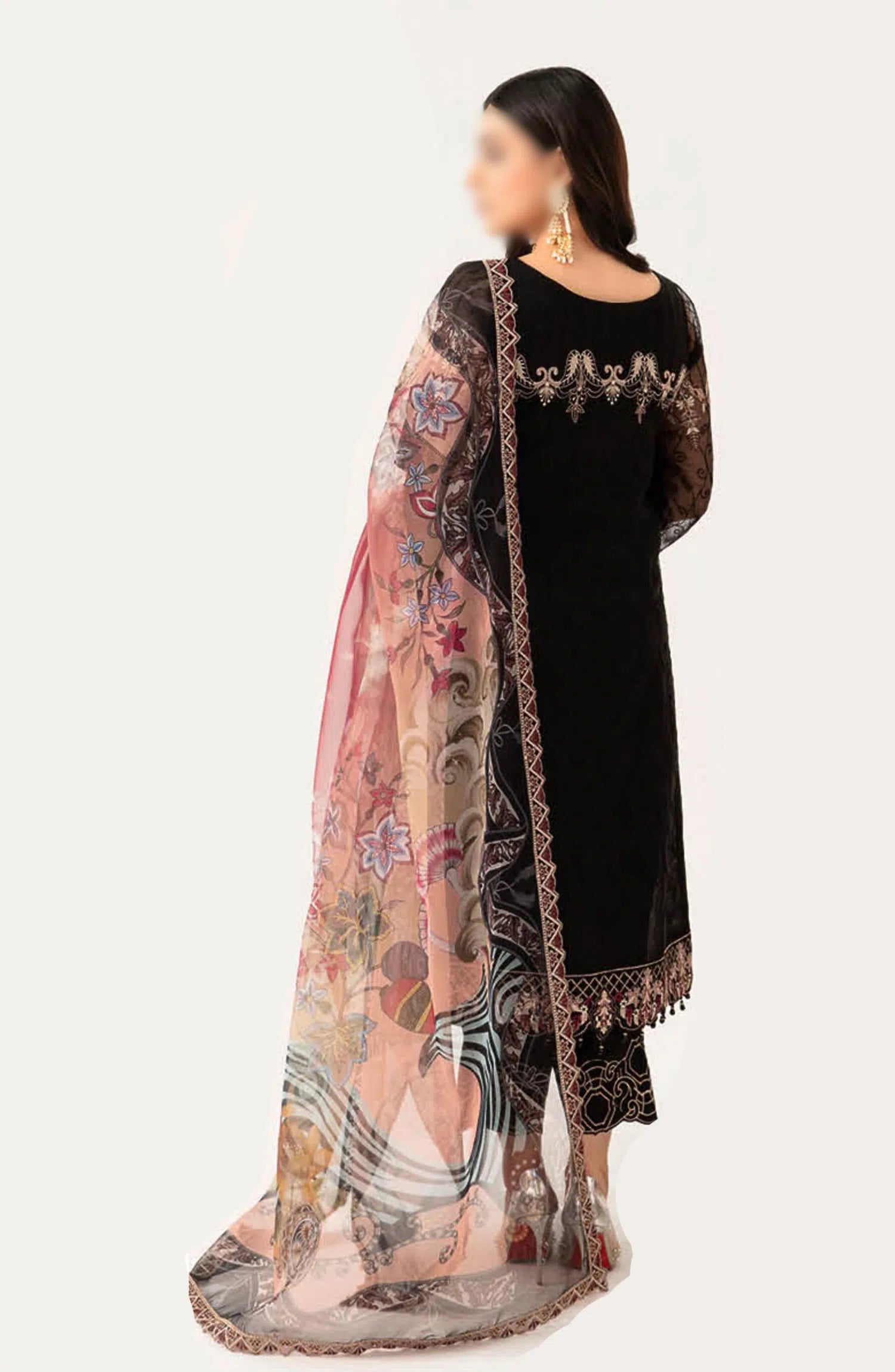 The standard style comes as a long-sleeved kameez with dupatta and trouser/shalwar.