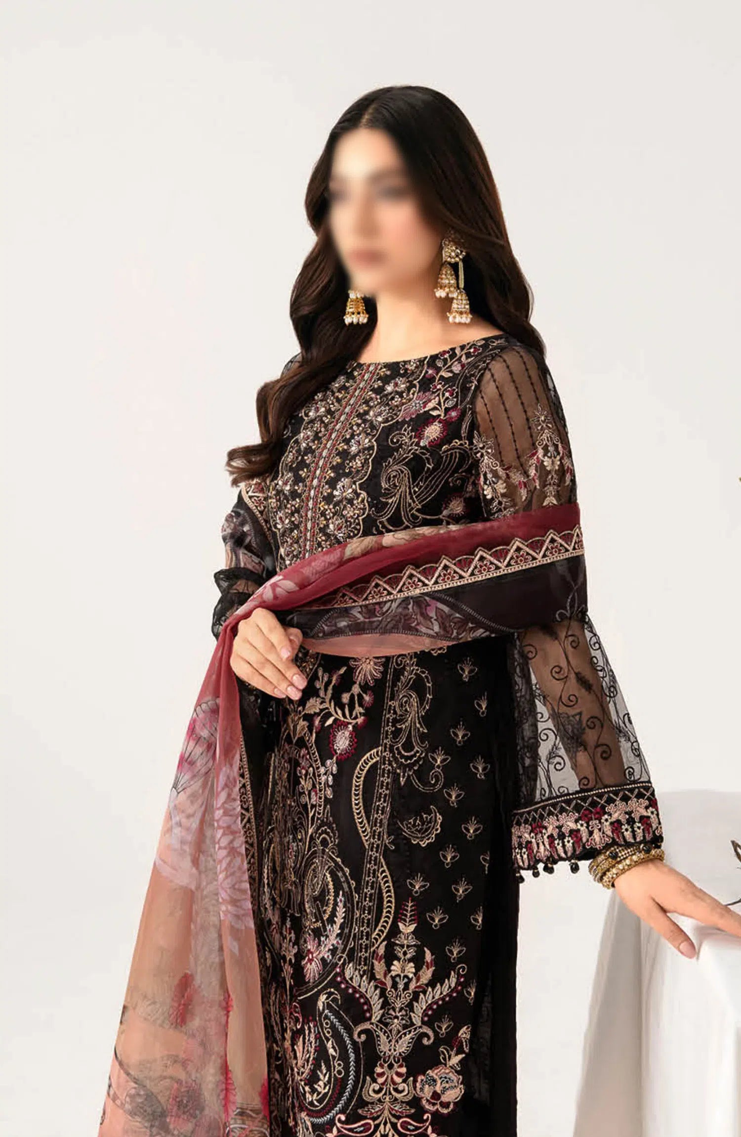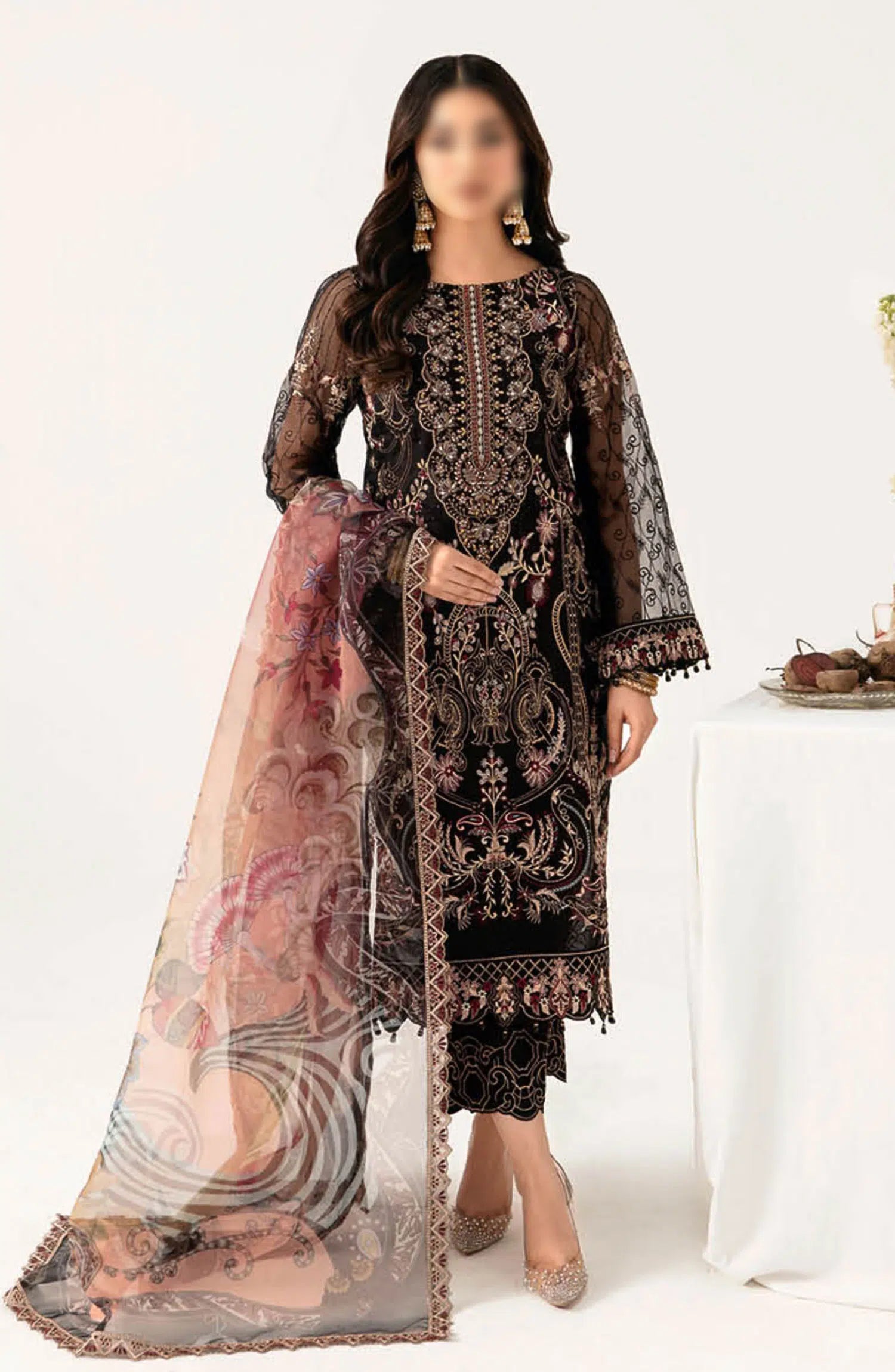 Ramsha Minahil Luxury Organza Collection Vol 11 has been styled in the image for photography and illustrative purposes.