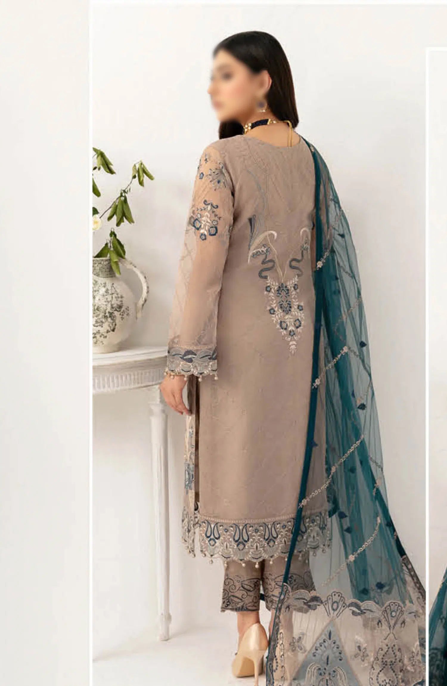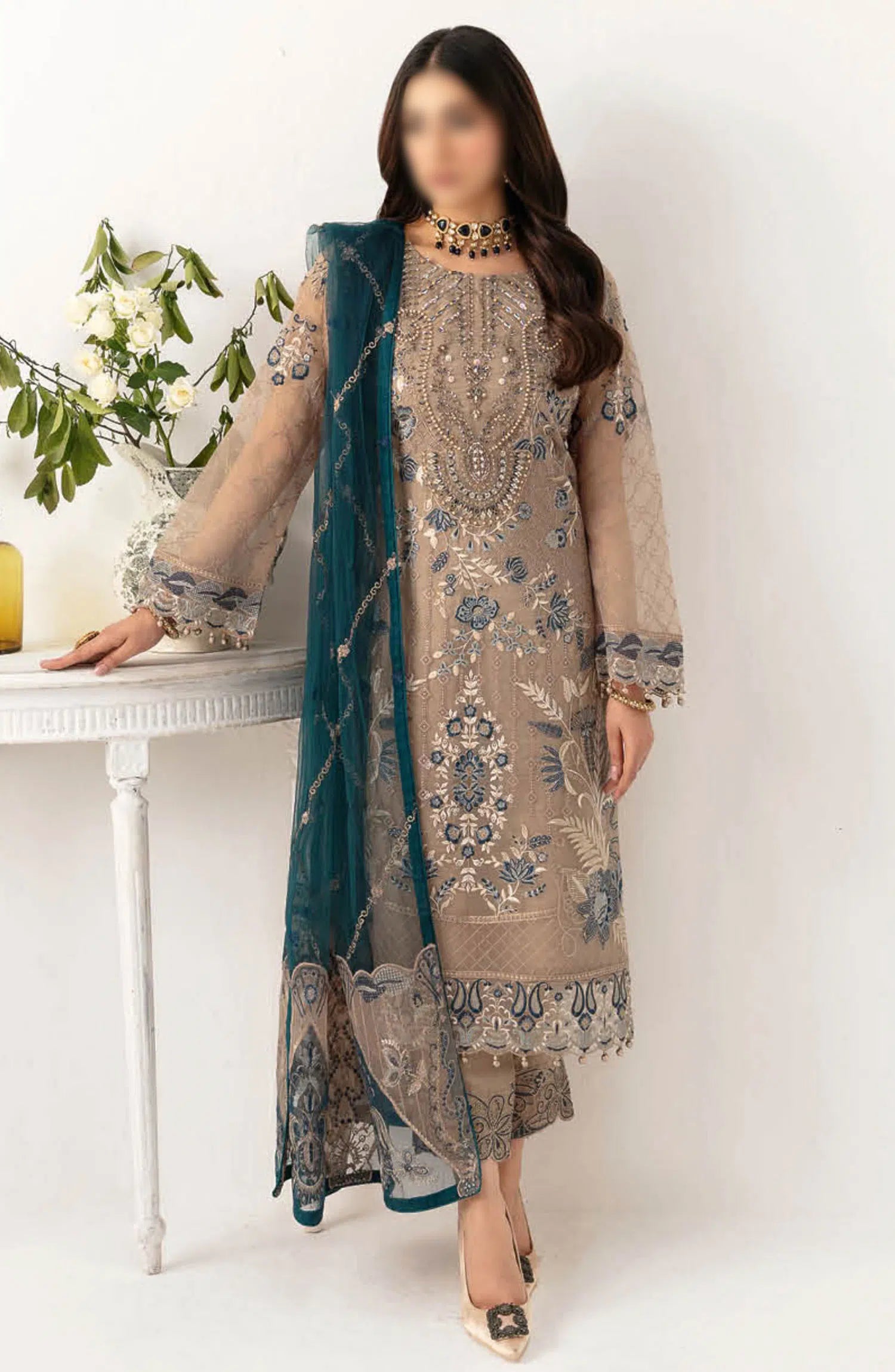 Maryams Luxury Embroidered Net Unstitched 3 Piece Suit - Eiraam-ARZ-8003 - MAR25LF - Fawn - Festive Collection