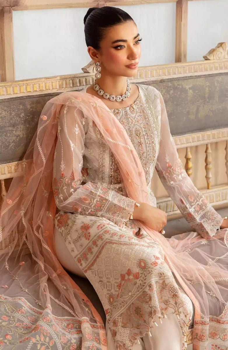 Maryams Luxury Embroidered Net Unstitched 3 Piece Suit - Eiraam-ARZ-8003 - MAR25LF - Fawn - Festive Collection