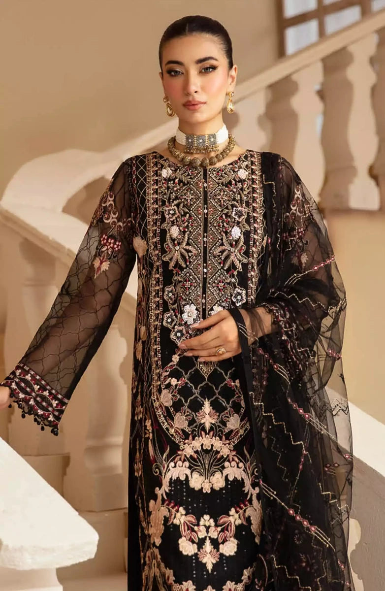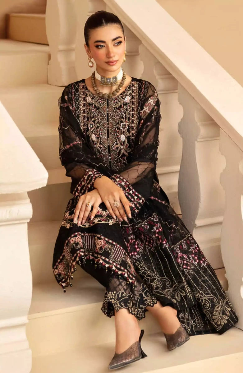 3 Piece | All Categories Women | Hot Sellers | New Arrival | Organza | Ramsha | Ramsha Minhal Organza Collection Vol 12 | Ramsha Organza Collection | Shop by Color Black | Shop by Season All Seasons | Shop by Style Unstitched | Unstitched | Unstitched Collections | Unstitched Festive wear | Women
