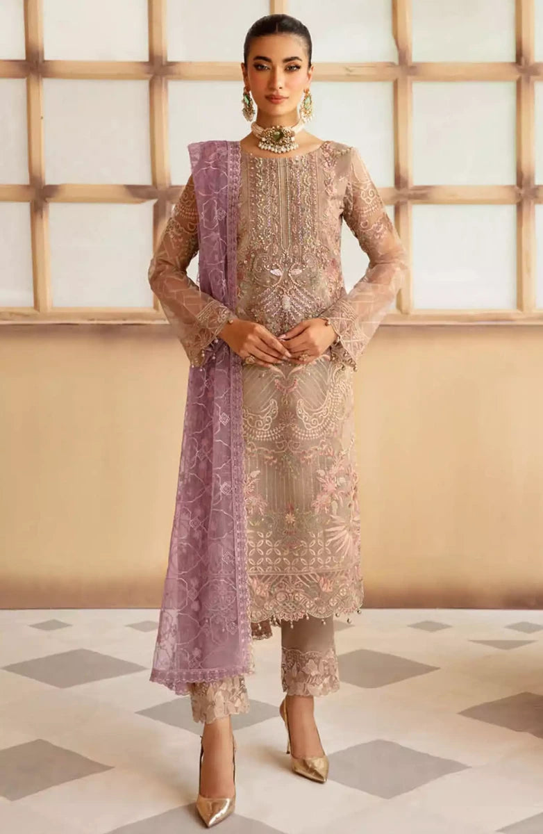 3 Piece | All Categories Women | Hot Sellers | New Arrival | Organza | Ramsha | Ramsha Minhal Organza Collection Vol 12 | Ramsha Organza Collection | Shop by Color Light Pink | Shop by Season All Seasons | Shop by Style Unstitched | Unstitched | Unstitched Collections | Unstitched Festive wear | Women