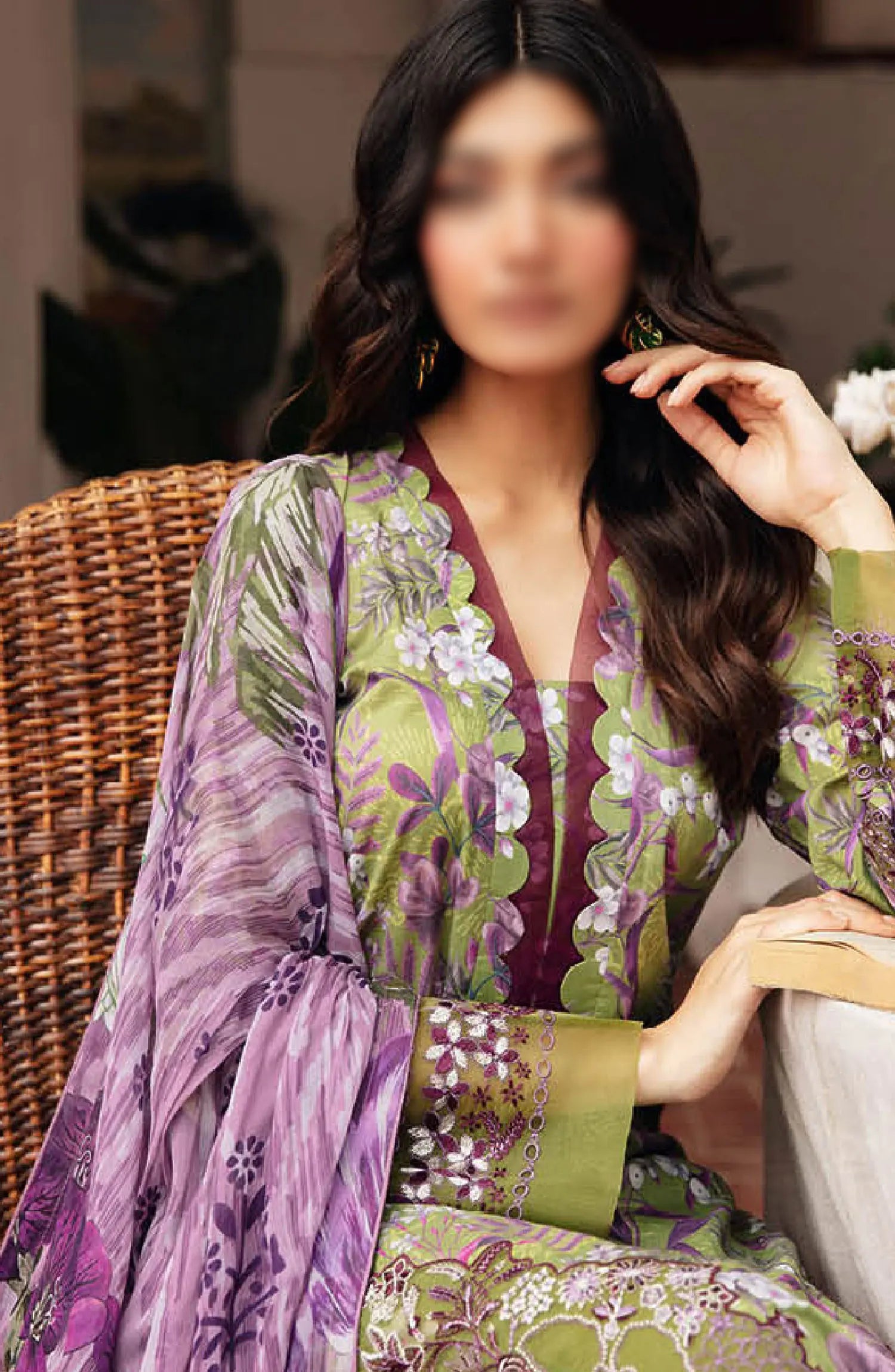 Ramsha Rangrez Luxury Lawn Collection Vol 04 2024 has been styled in the image for photography and illustrative purposes.