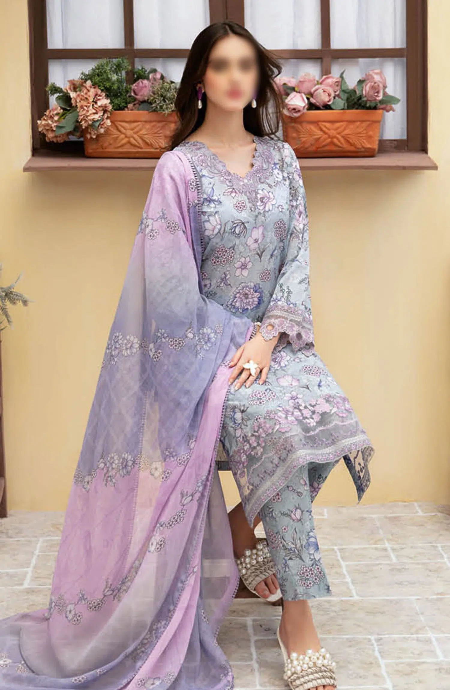 Modest Embroidered Chiffon Stitched 3 Piece Suit - 9840-Cblu - MOD25PRF - Blue - Festive Girls Collection