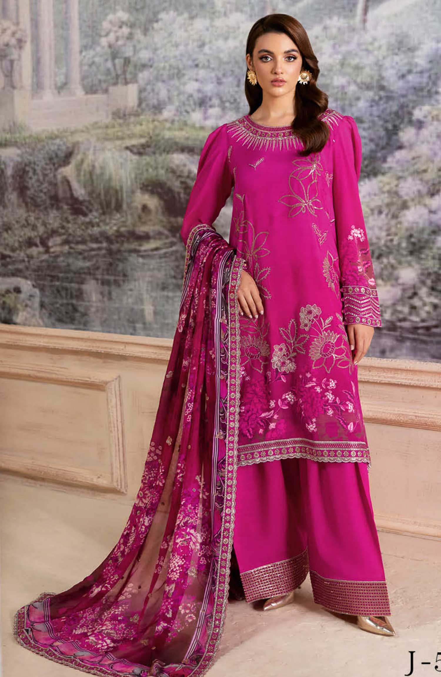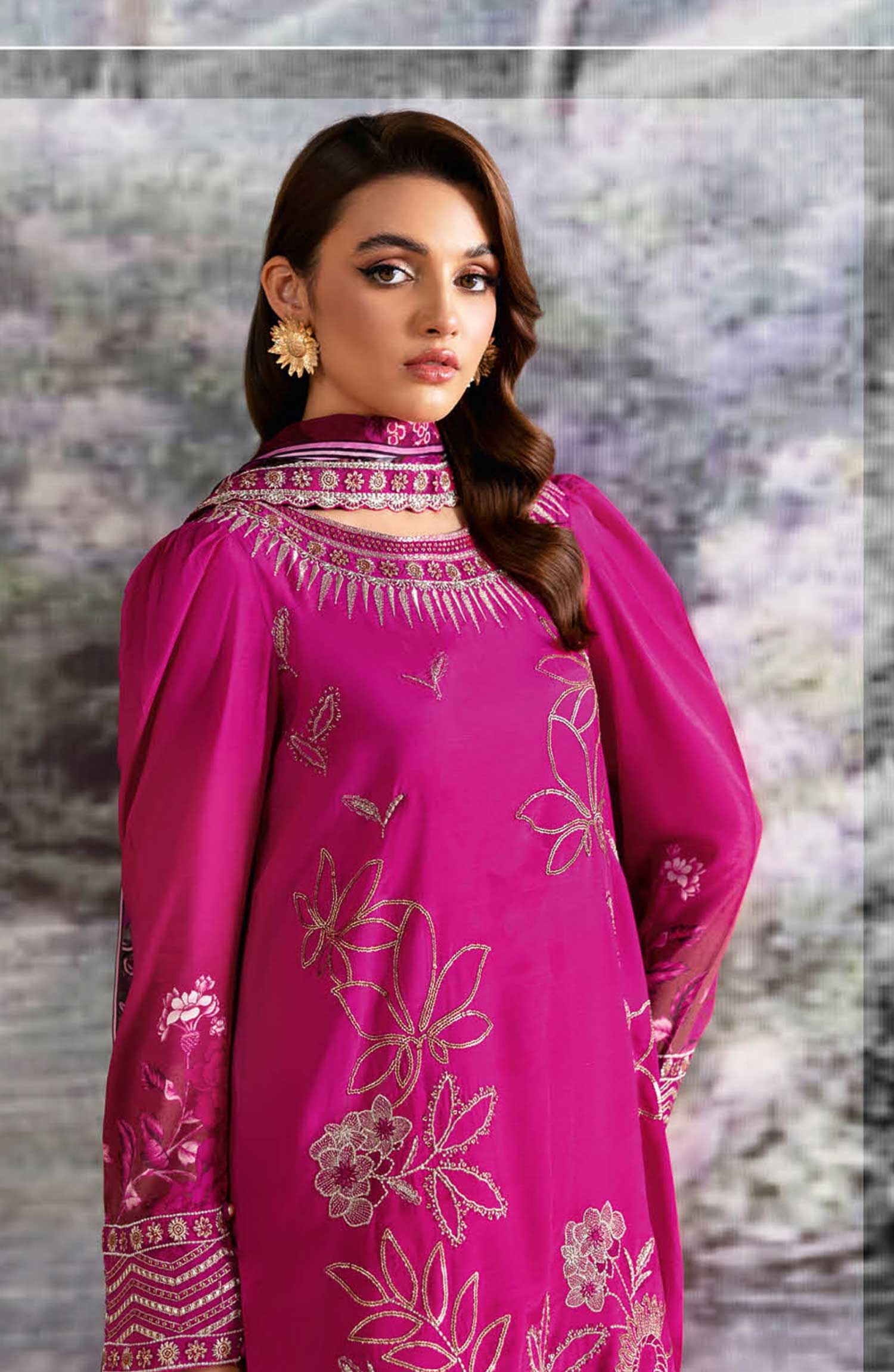 Ramsha Riwaj Premium Rawsilk Collection Vol 05 has been styled in the image for photography and illustrative purposes.