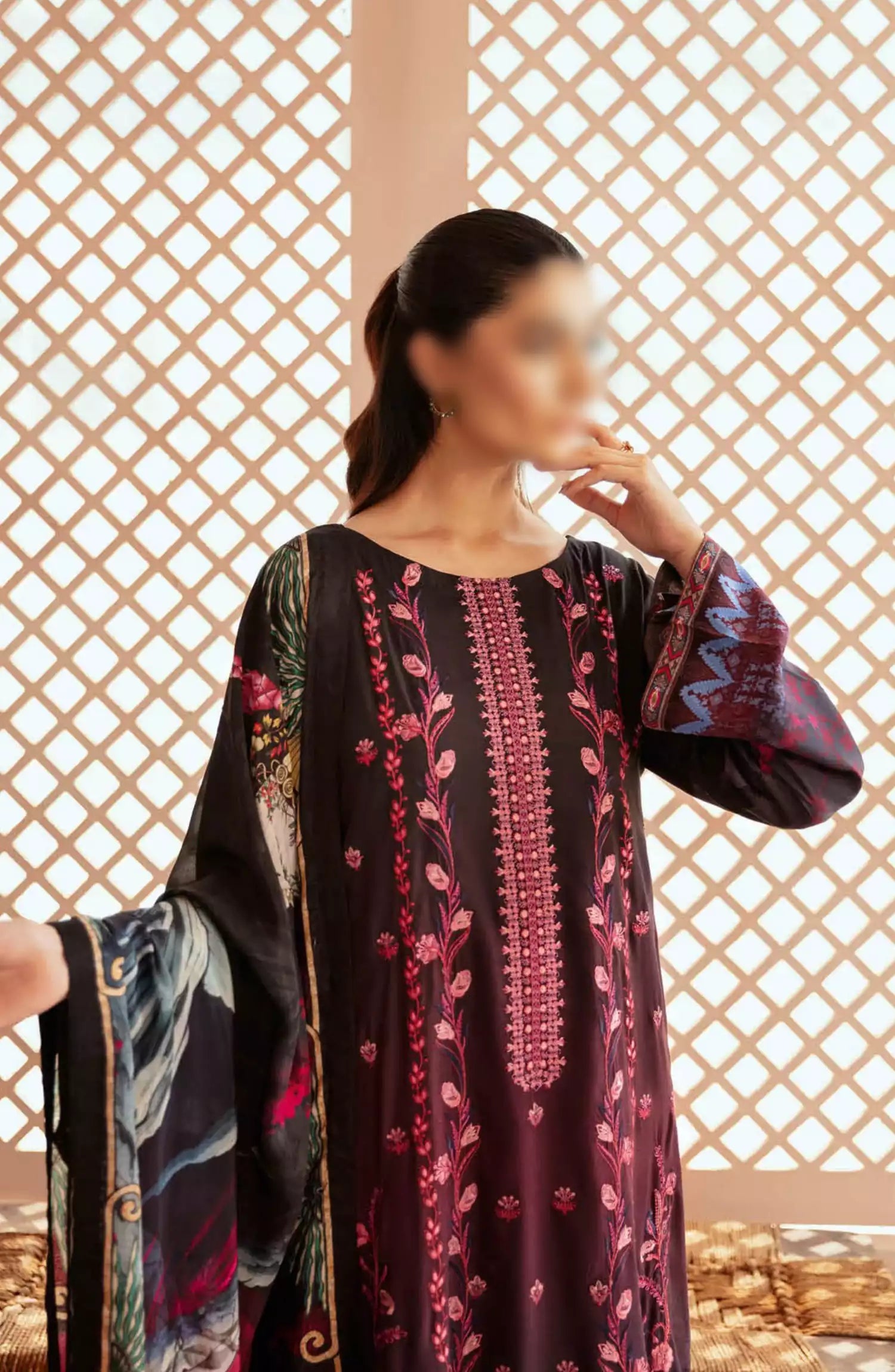 Ramsha Riwaj Viscose Collection Vol 03 has been styled in the image for photography and illustrative purposes.