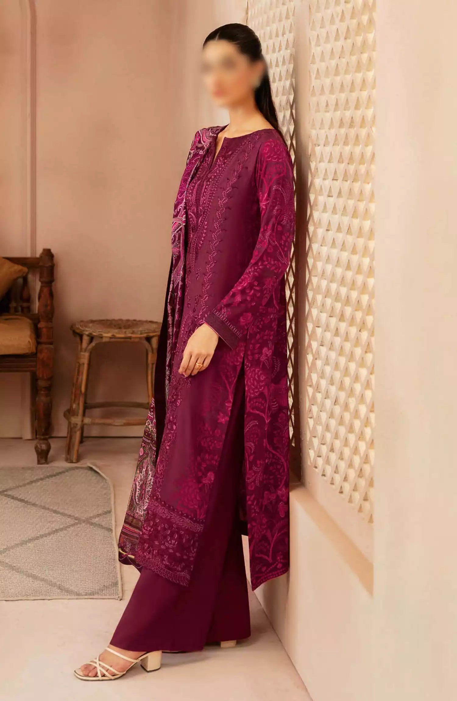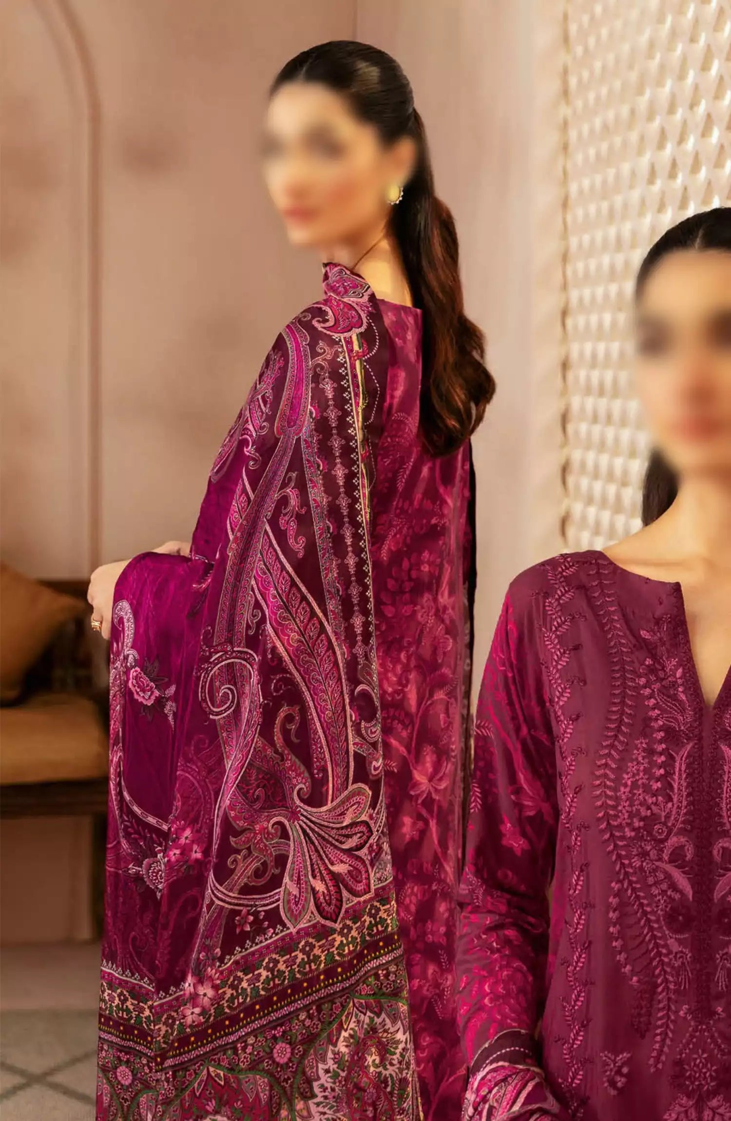 Ramsha Riwaj Viscose Collection Vol 03 has been styled in the image for photography and illustrative purposes.
