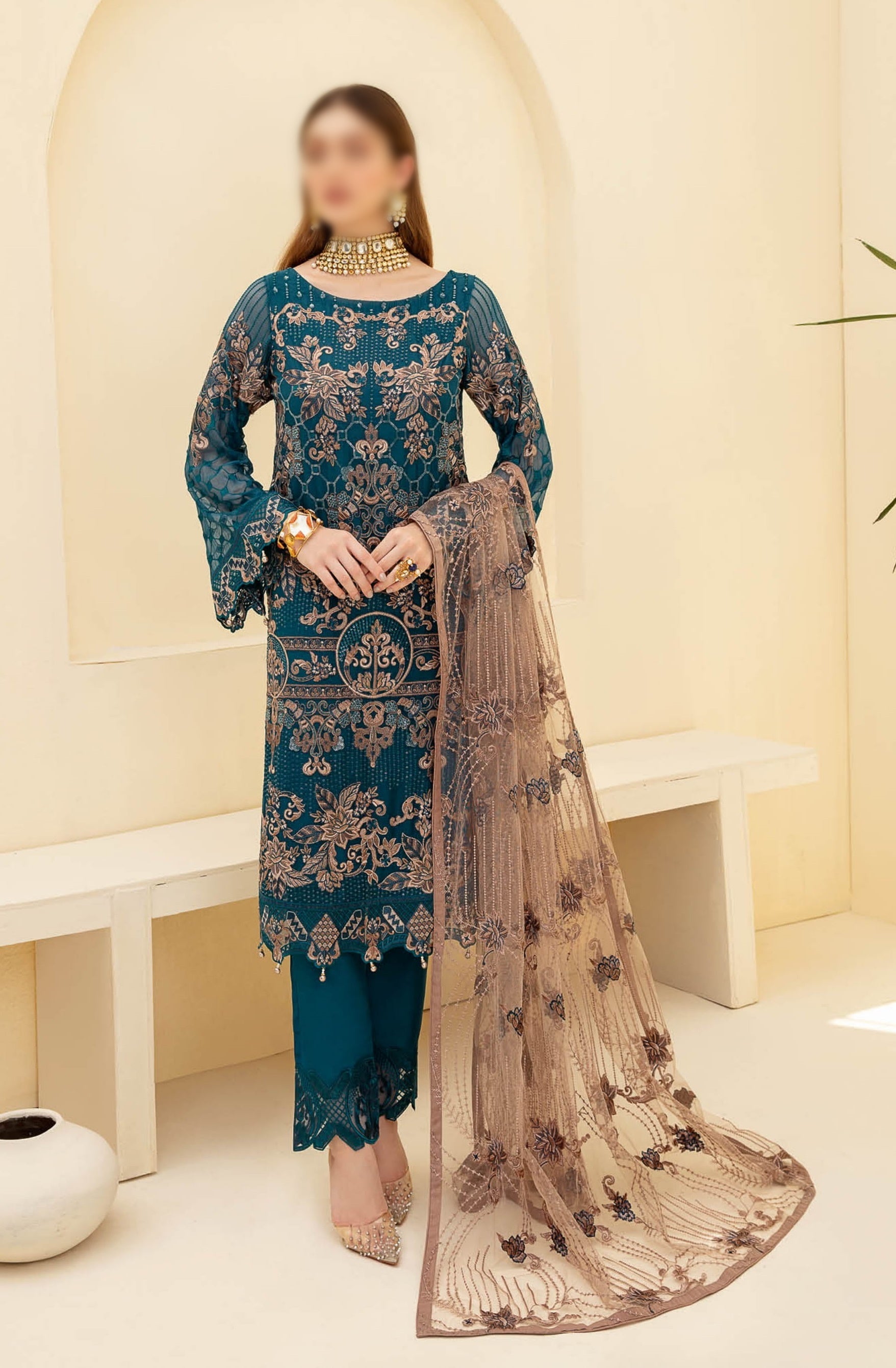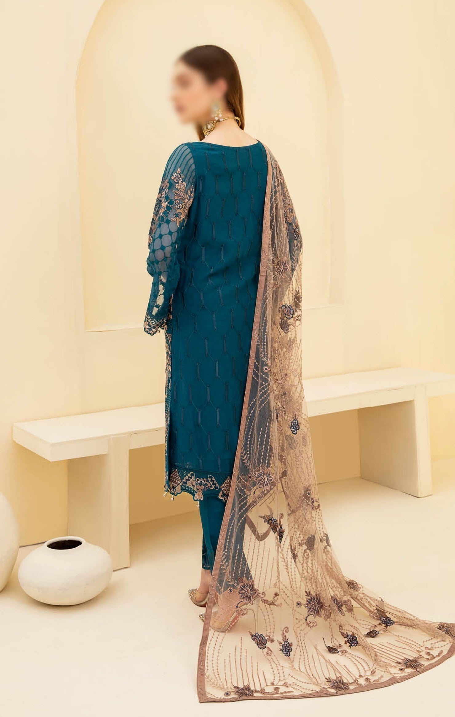 Rangoon Luxury Chiffon Collection by Ramsha Vol.7 has been styled in the image for photography and illustrative purposes.