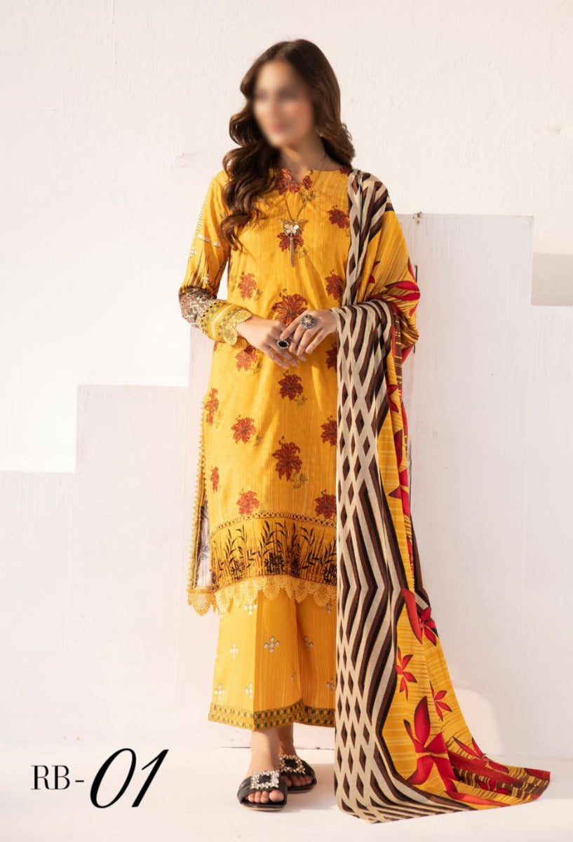 Rang Barang Embroidered and Printed Slub Collection has been styled in the image for photography and illustrative purposes.