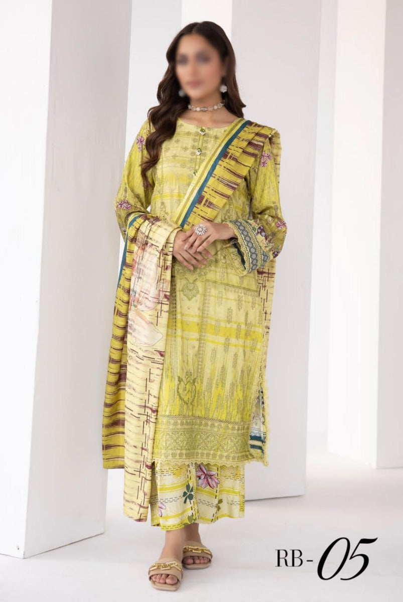 Rang Barang Embroidered and Printed Slub Collection has been styled in the image for photography and illustrative purposes.