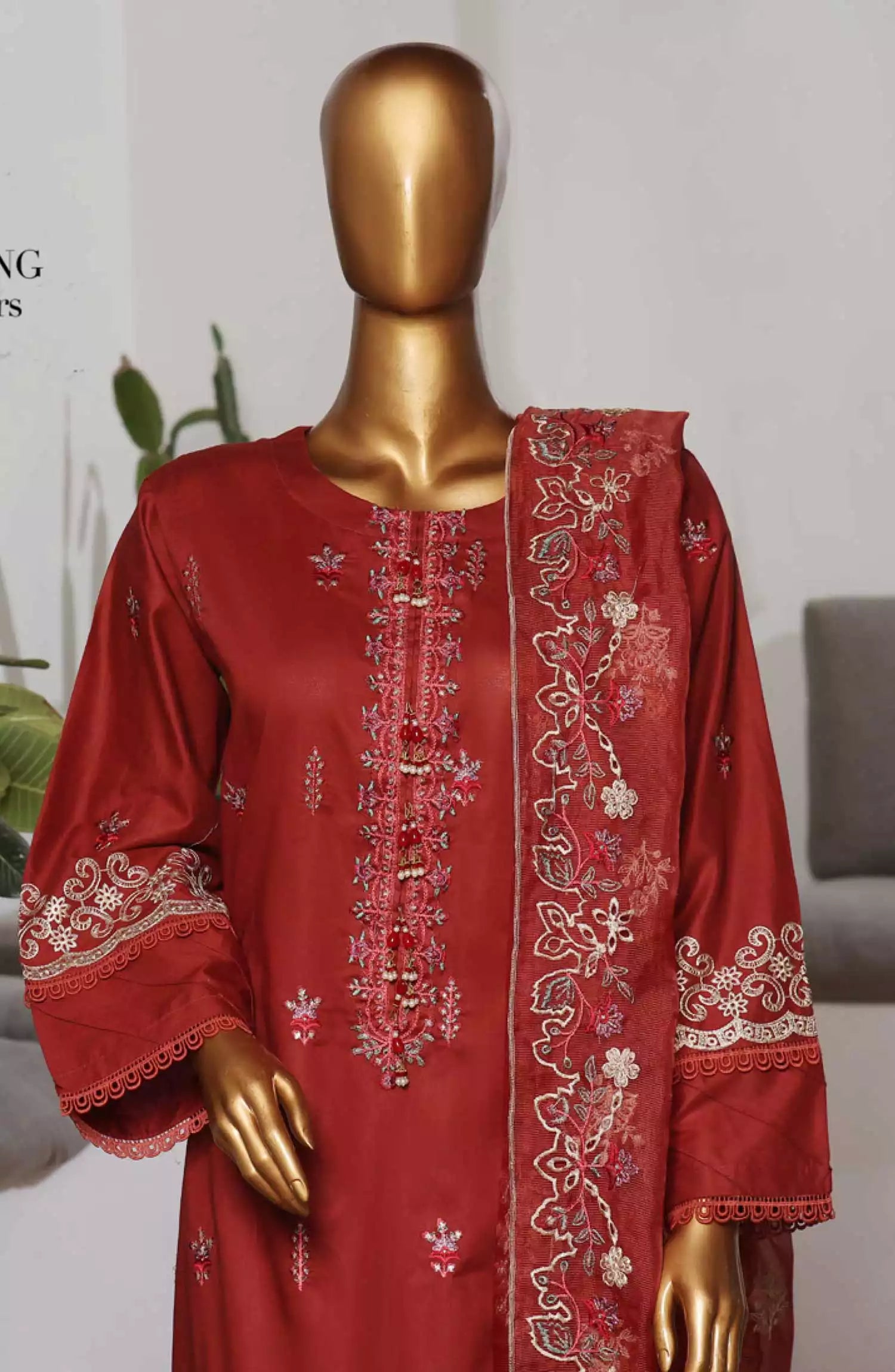 Rang E Nagar Embroidered Unstitched Vol 02 has been styled in the image for photography and illustrative purposes.