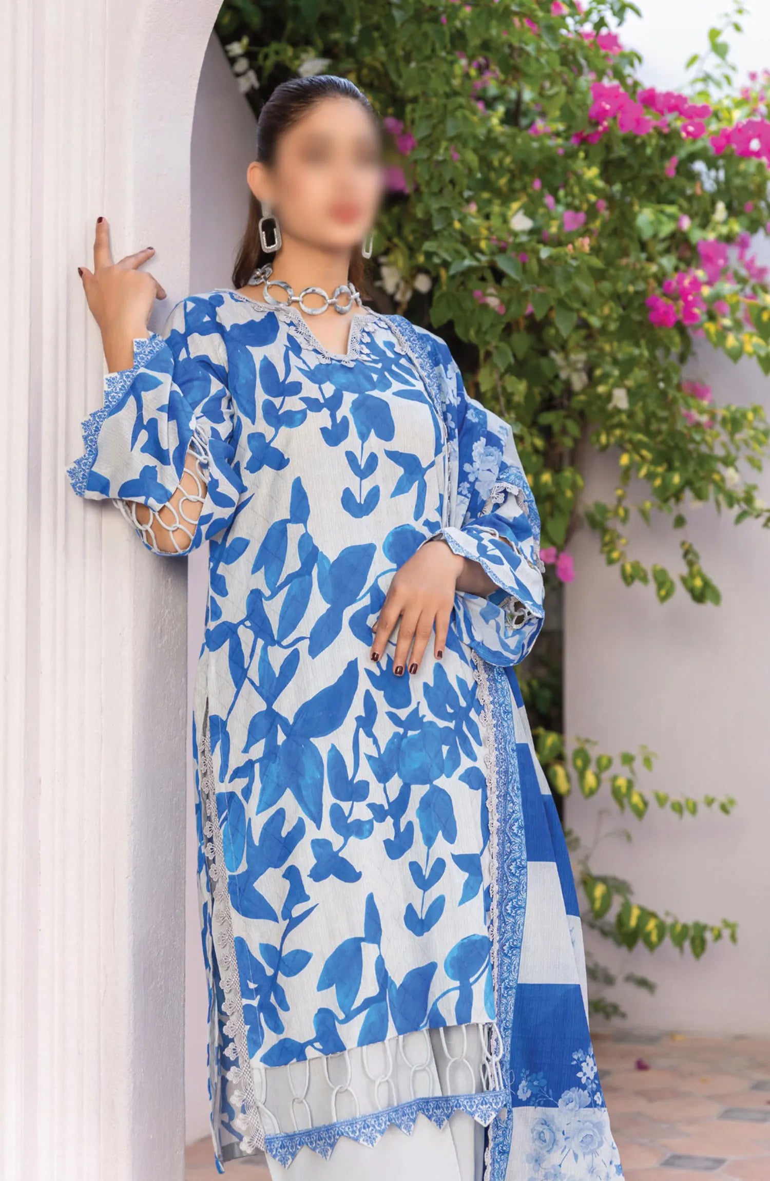 Baroque Chantelle Embroidered Net Unstitched 3 Piece Suit - V14-D06 - BQ25CHN - Blue - Formal Collection