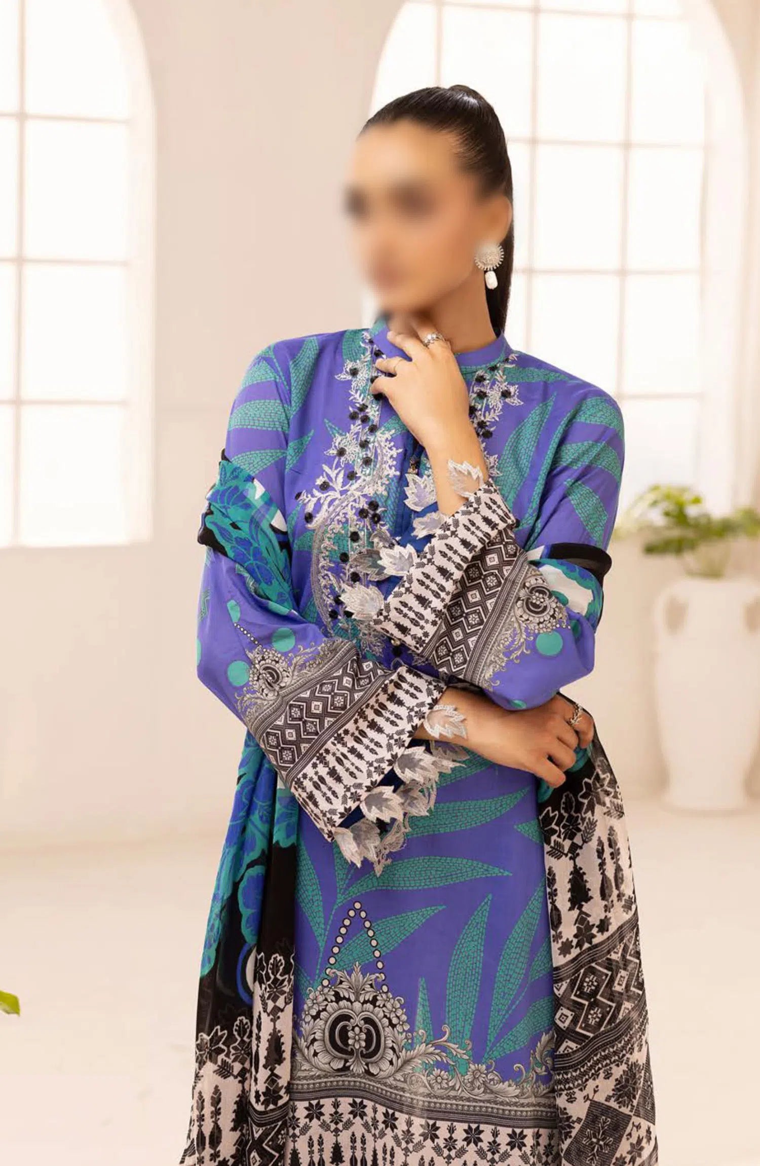Rang Nagar Embroidered and Printed Lawn Collection By NUR has been styled in the image for photography and illustrative purposes.