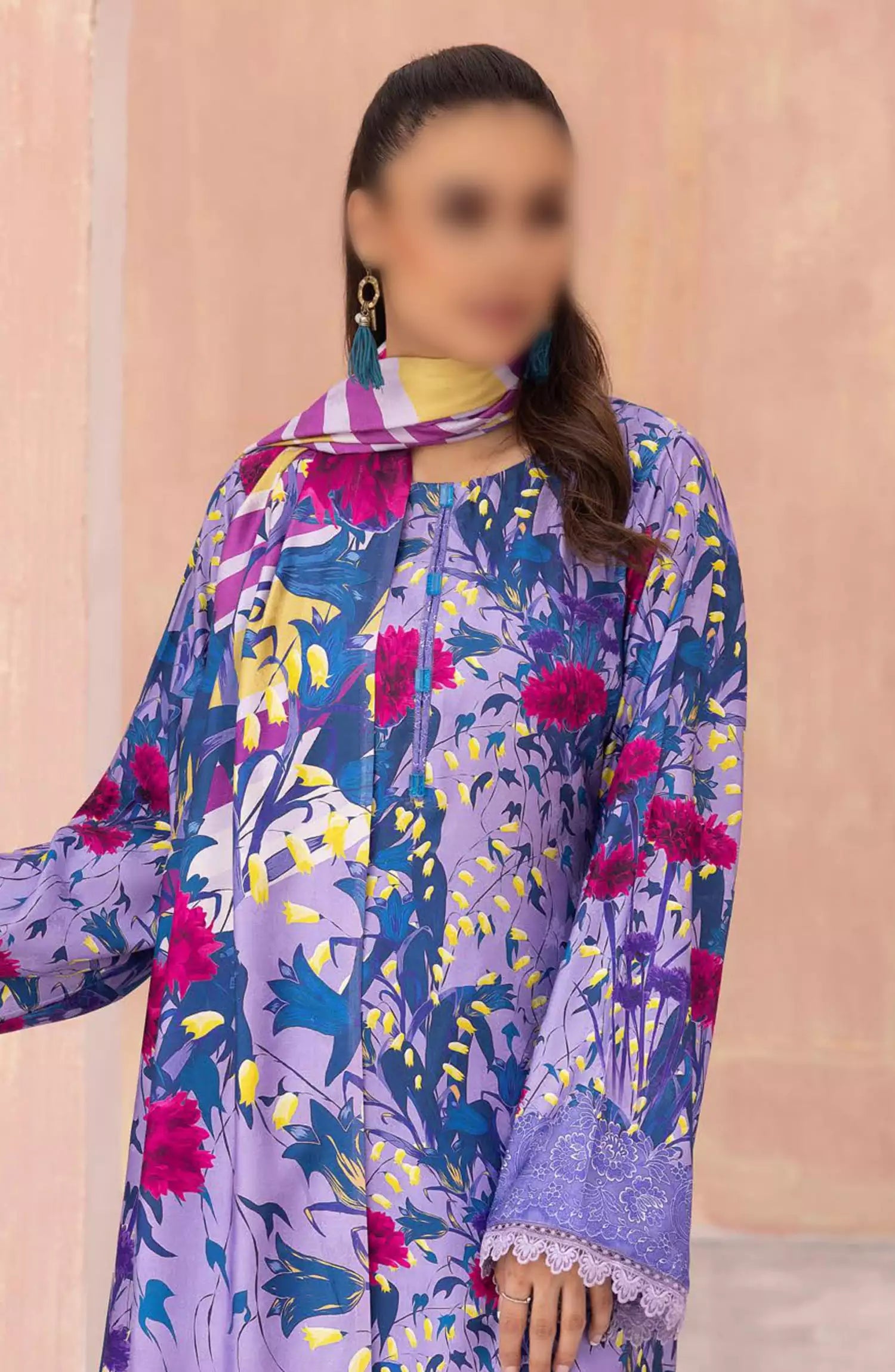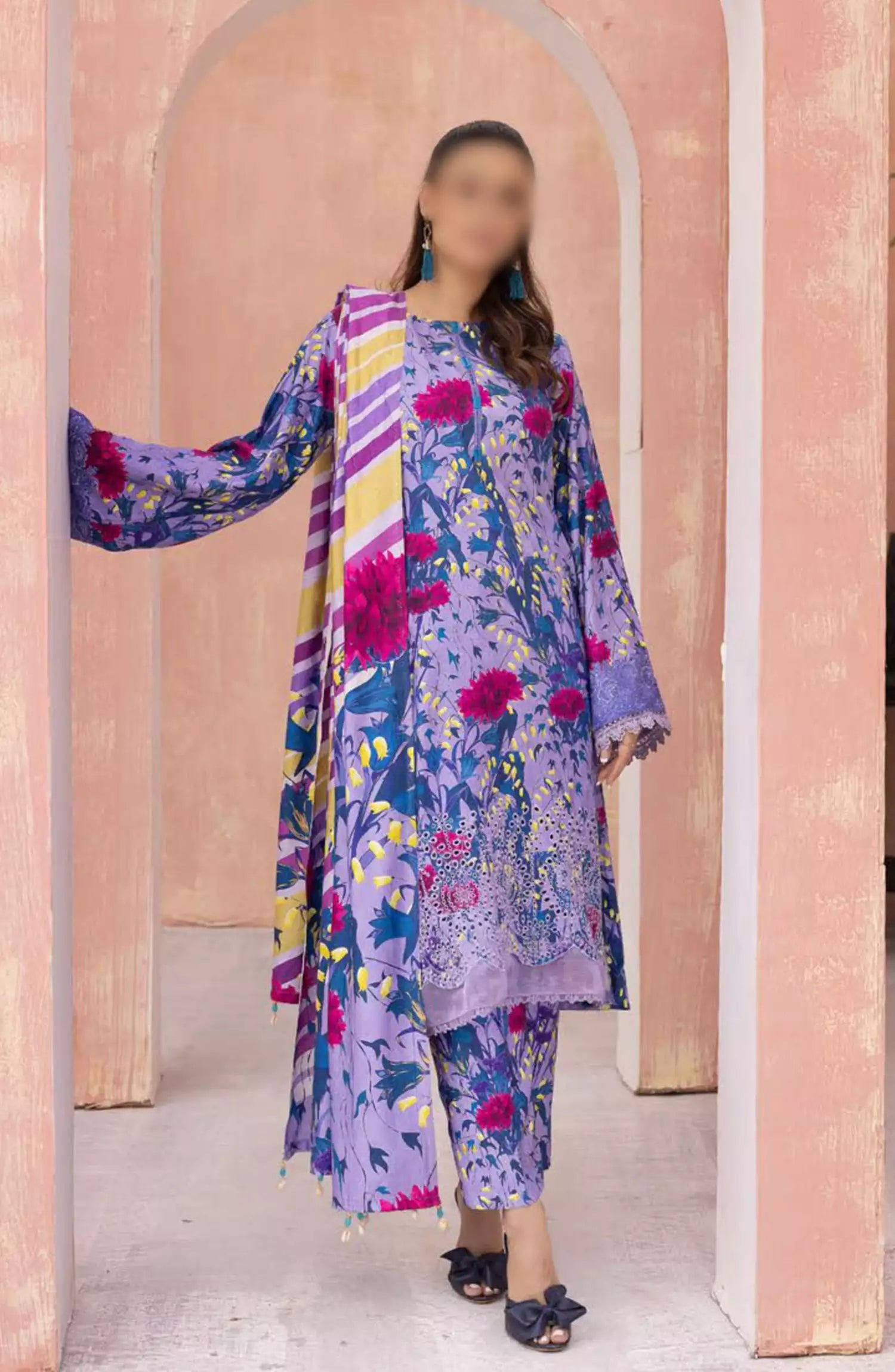 Modest Printed Cotton Stitched 3 Piece Suit - 9755-Prpl - MOD25PRF - Purple - Festive Girls Collection