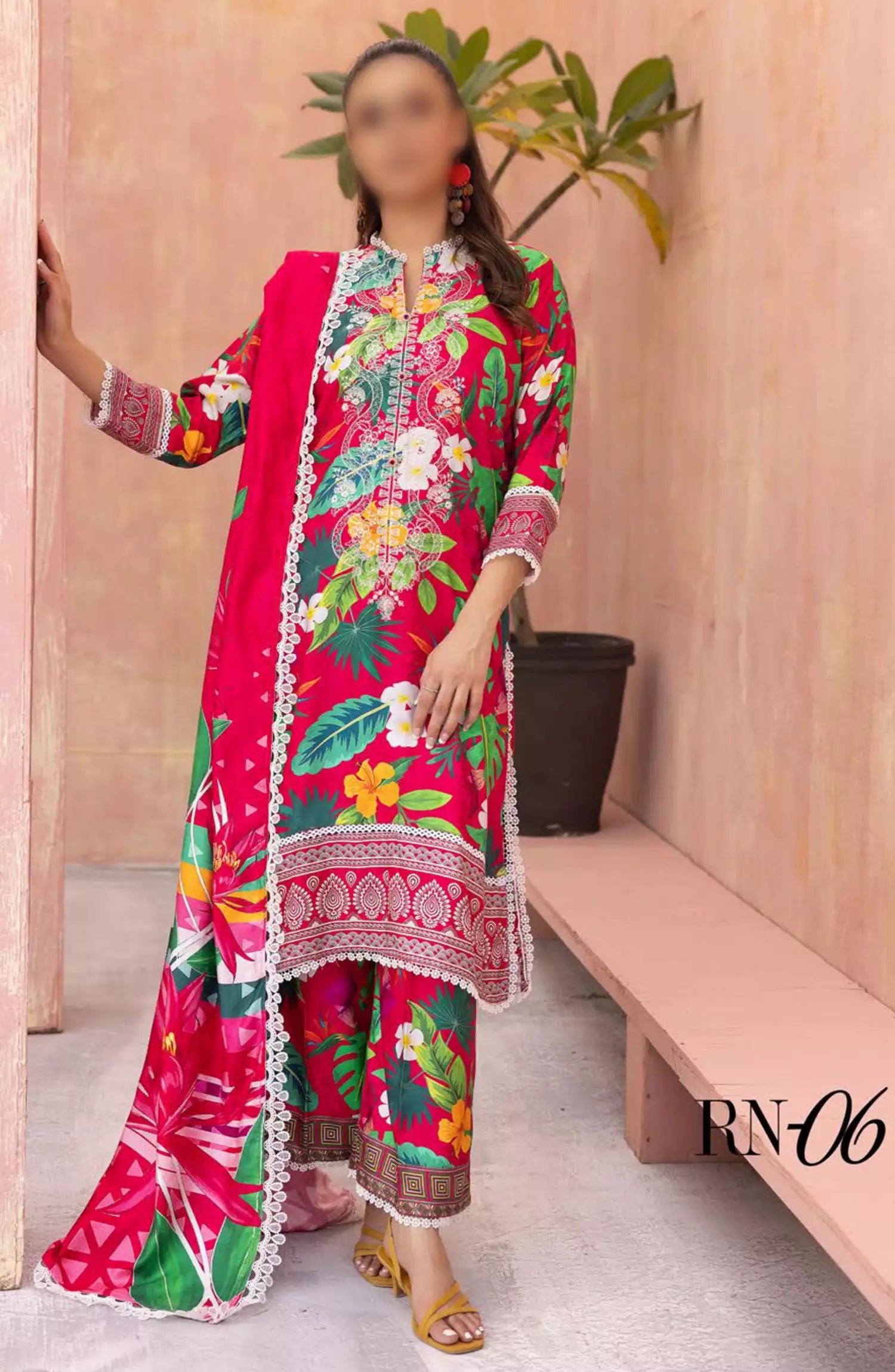 The standard style comes as a long-sleeved kameez with dupatta and trouser/shawlar.
