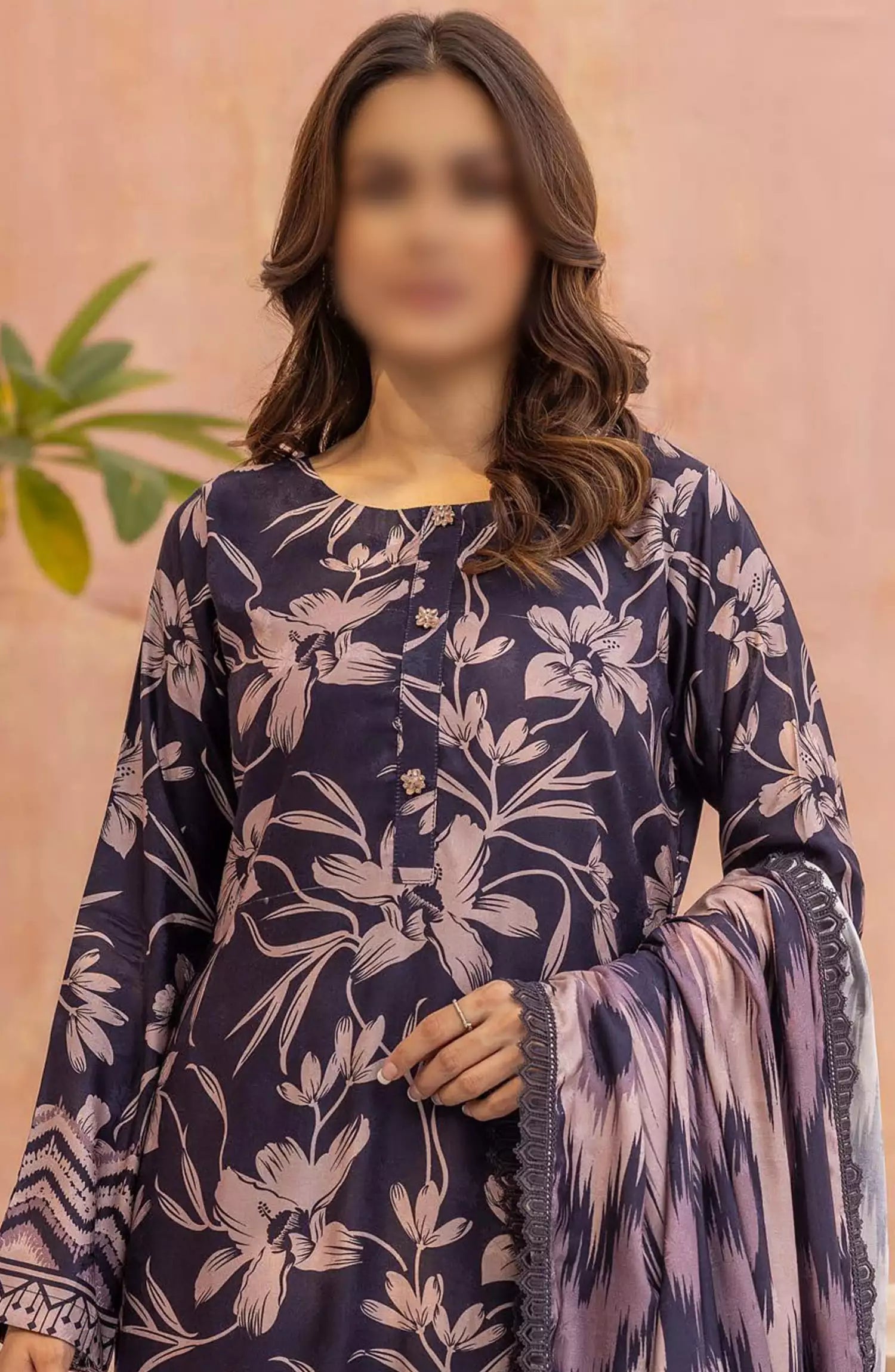 Modest Printed Cotton Stitched 3 Piece Suit - 9755-Prpl - MOD25PRF - Purple - Festive Girls Collection