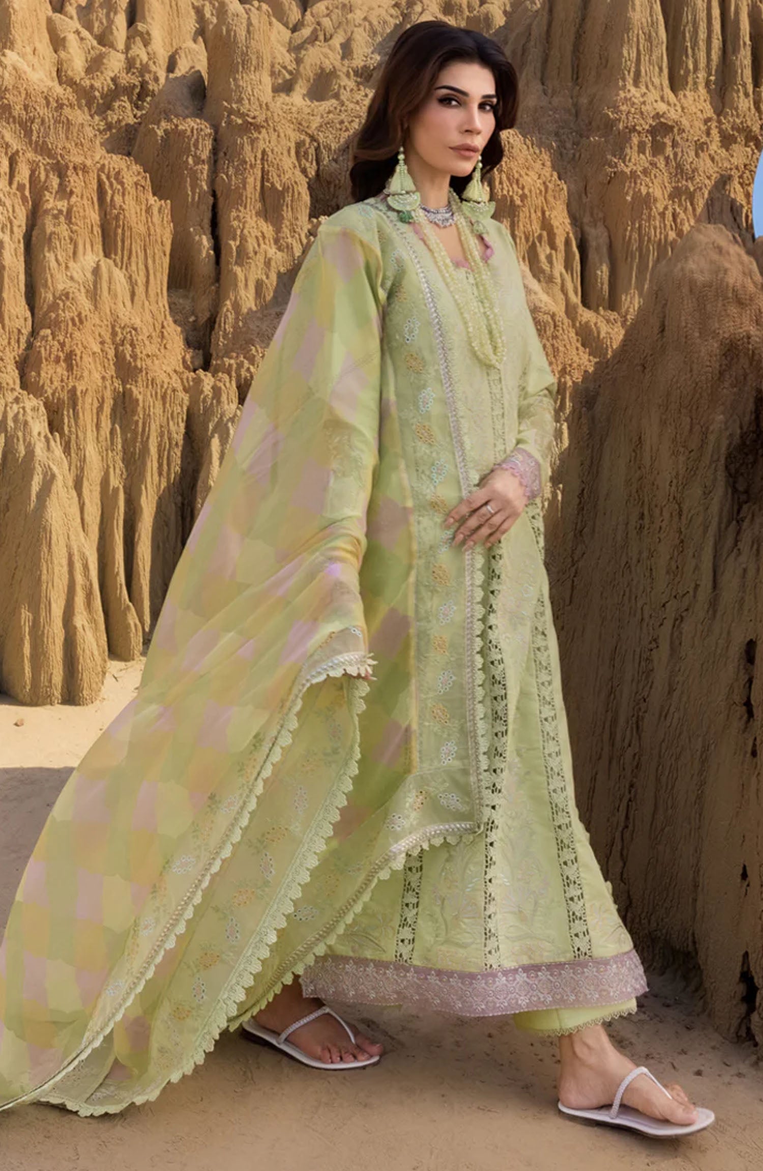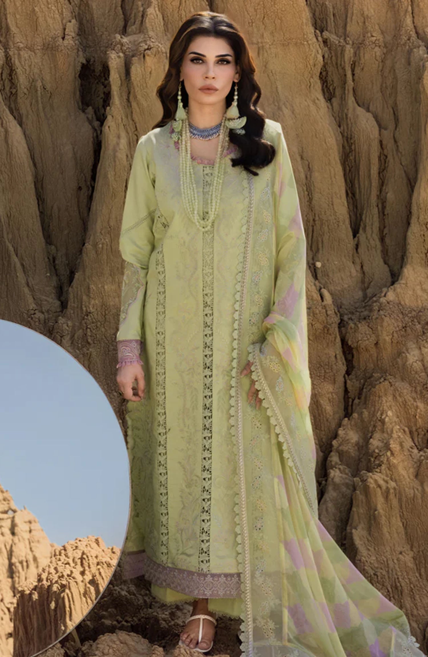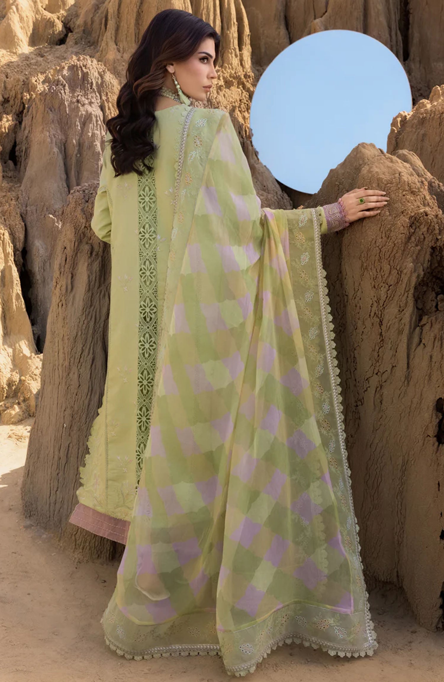 Dyed Organza Embroidered Sleeve Motif Right Side 1 Piece