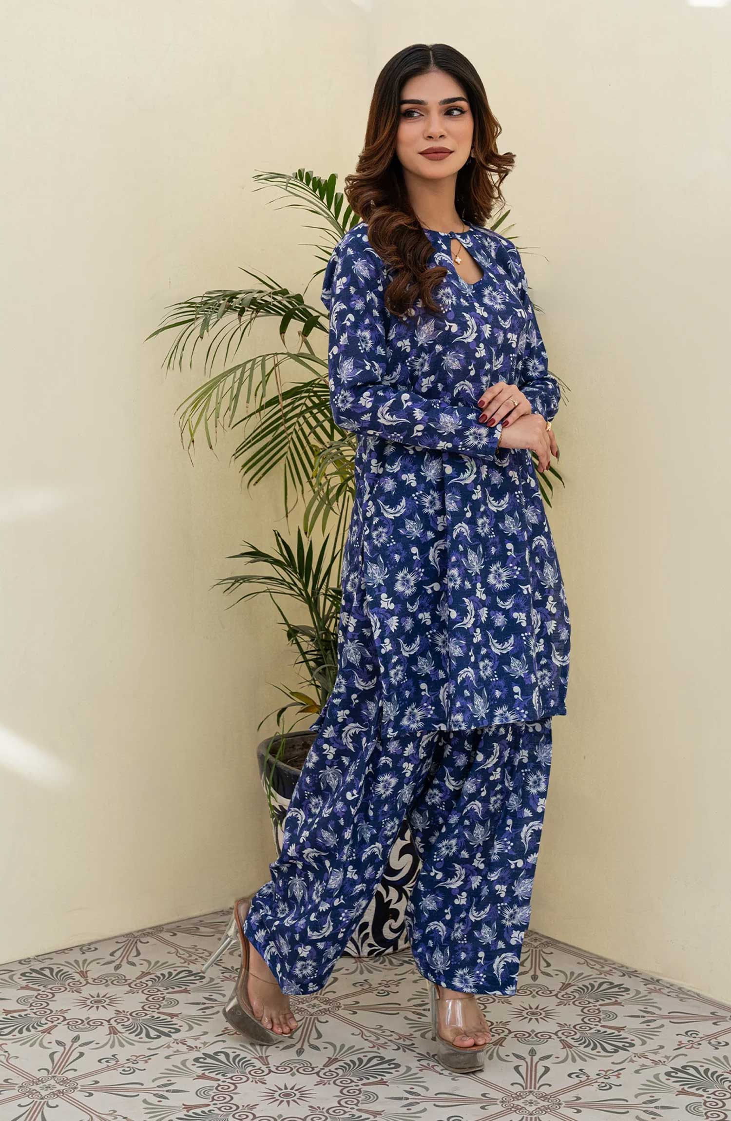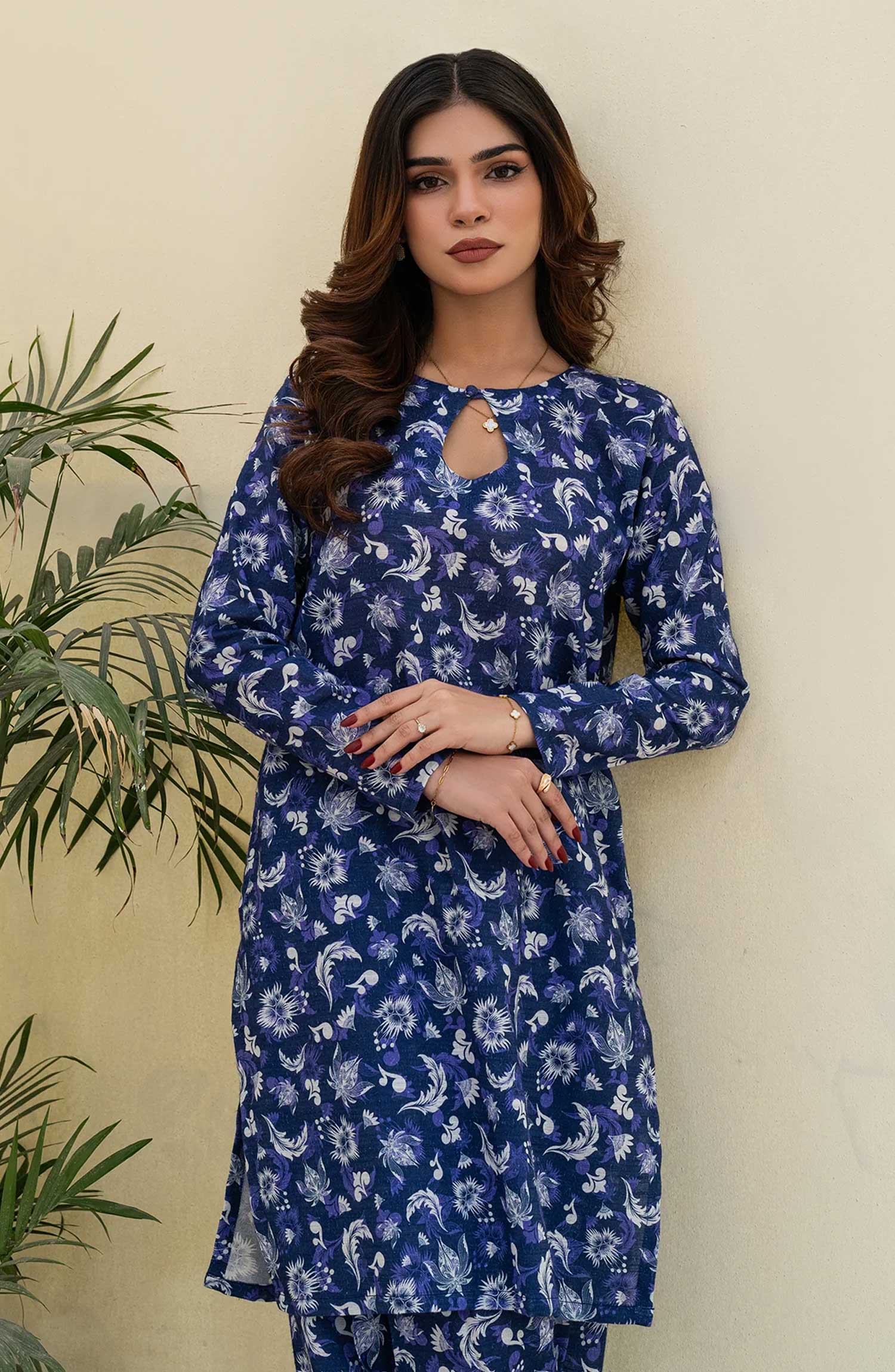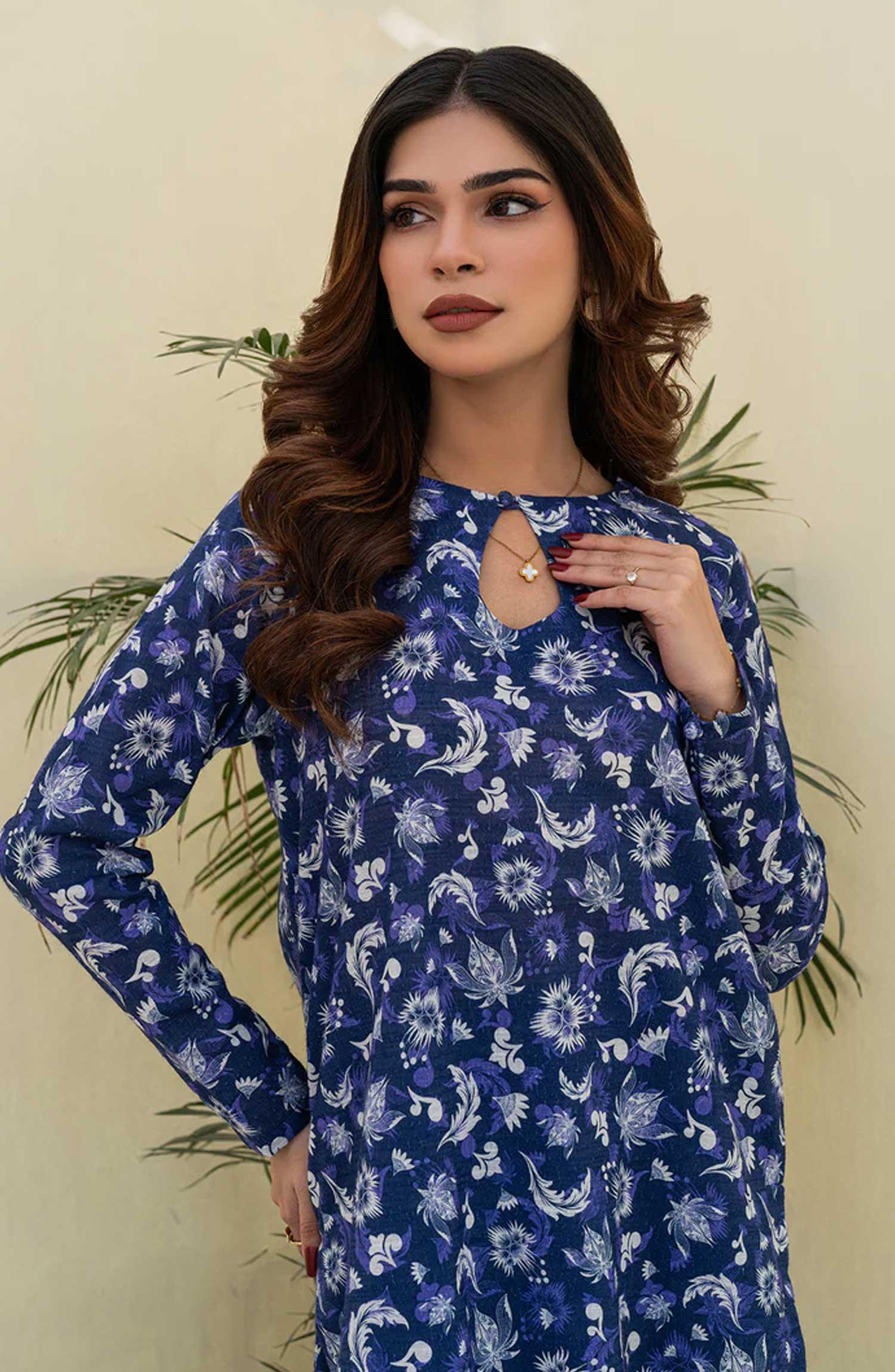 Home Rangeen Printed Khaddar Stitched 2 Piece - Aster Harmony - R25DW - Blue - Winter Collection
