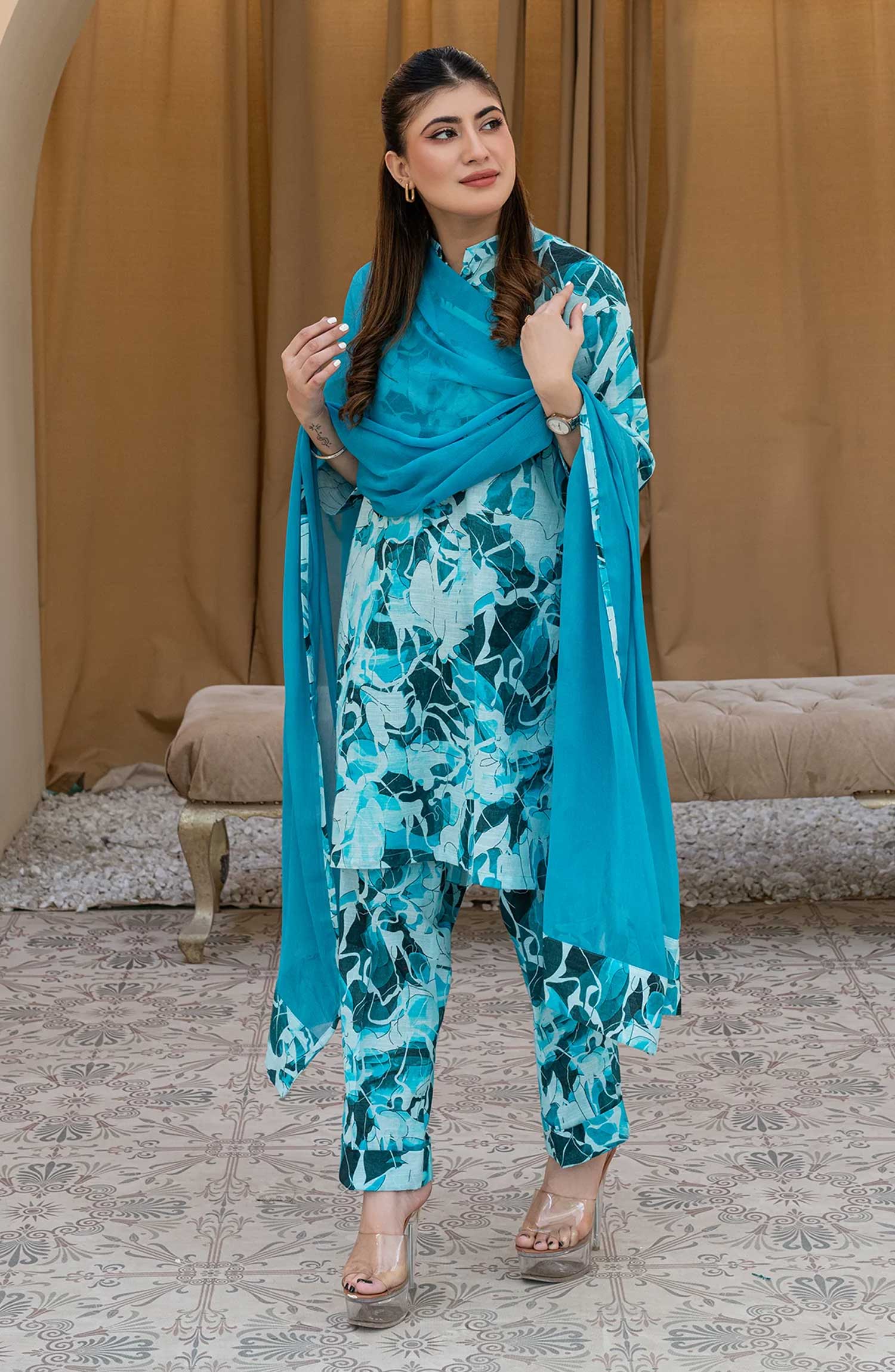 With the option of a separate dupatta and availability in both stitched and unstitched, you can style this outfit your way. Whether you prefer the convenience of ready-to-wear or the flexibility of tailoring, this versatile dress is a must-have addition to your winter wardrobe.
