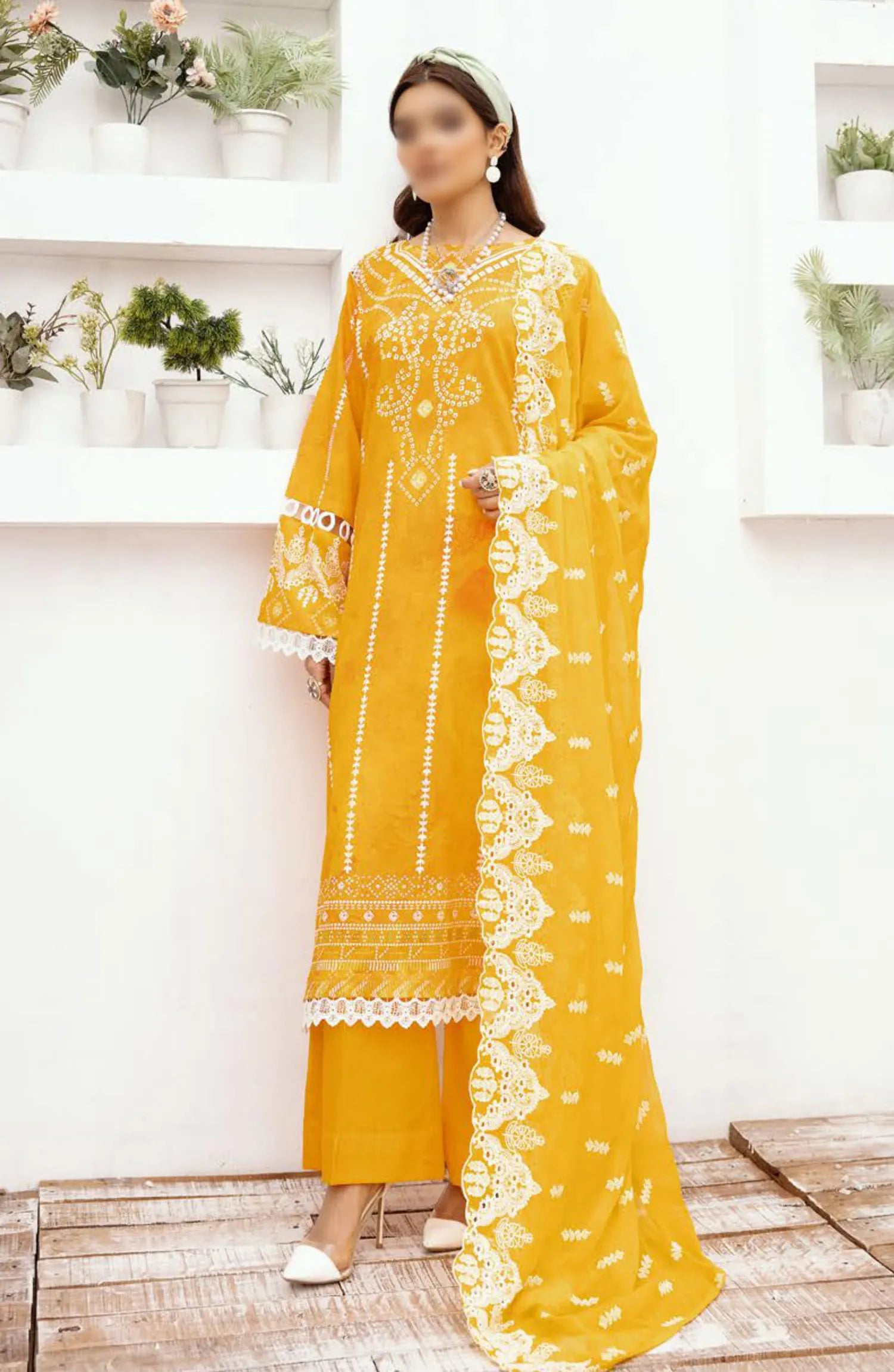 RangNagar Embroiderd and Printed Lawn Collection By NUR has been styled in the image for photography and illustrative purposes.