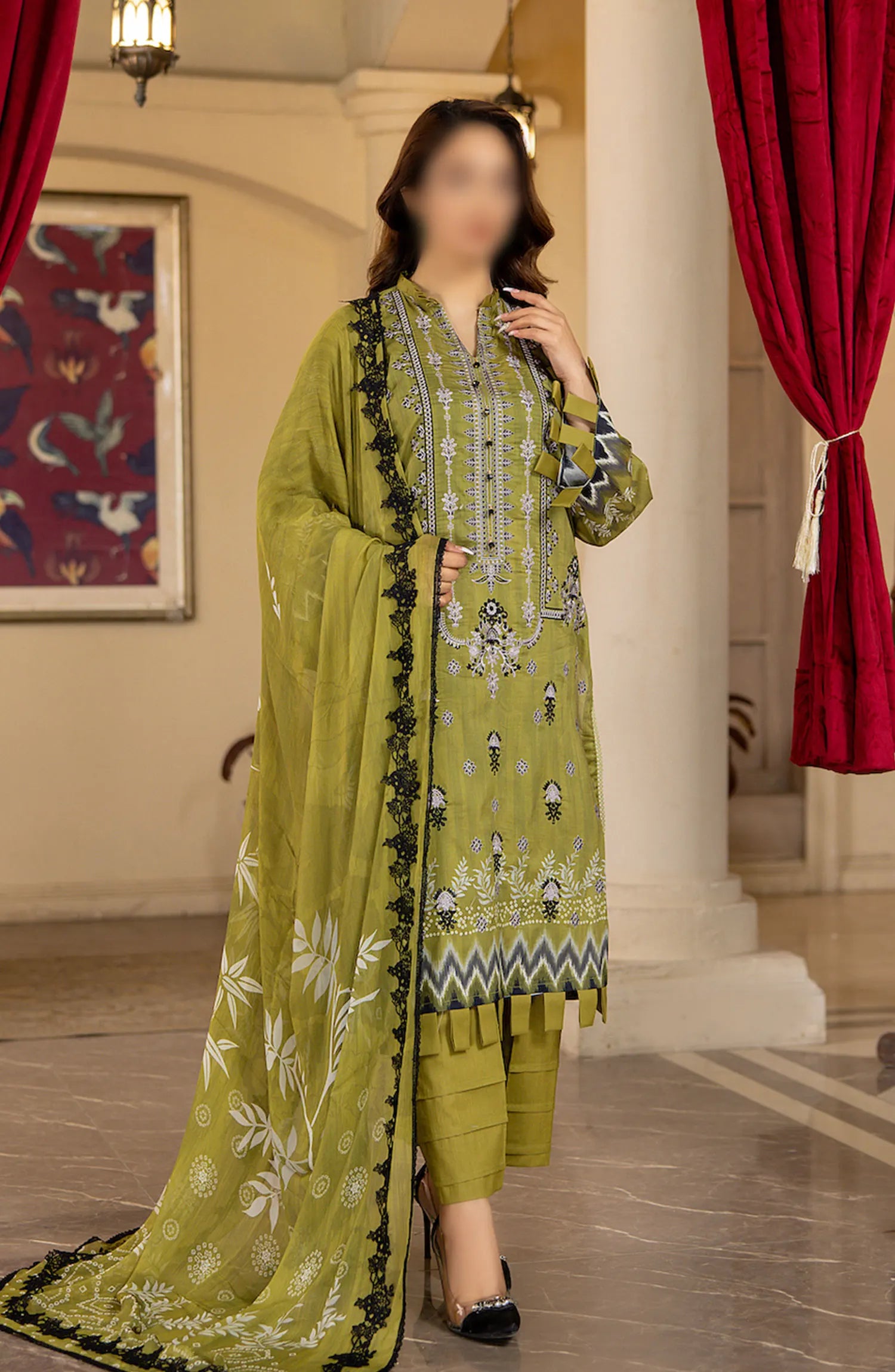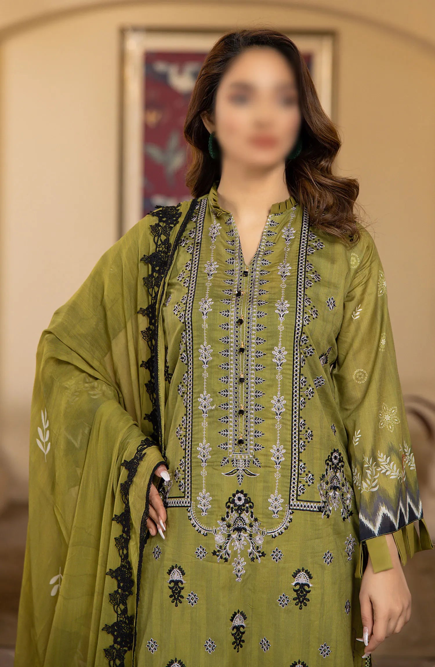 HZ Textile Digital Printed Linen Slub Unstitched 3 Piece Suit - LSD-306 - HZ25LNSL - Green - Winter Collection