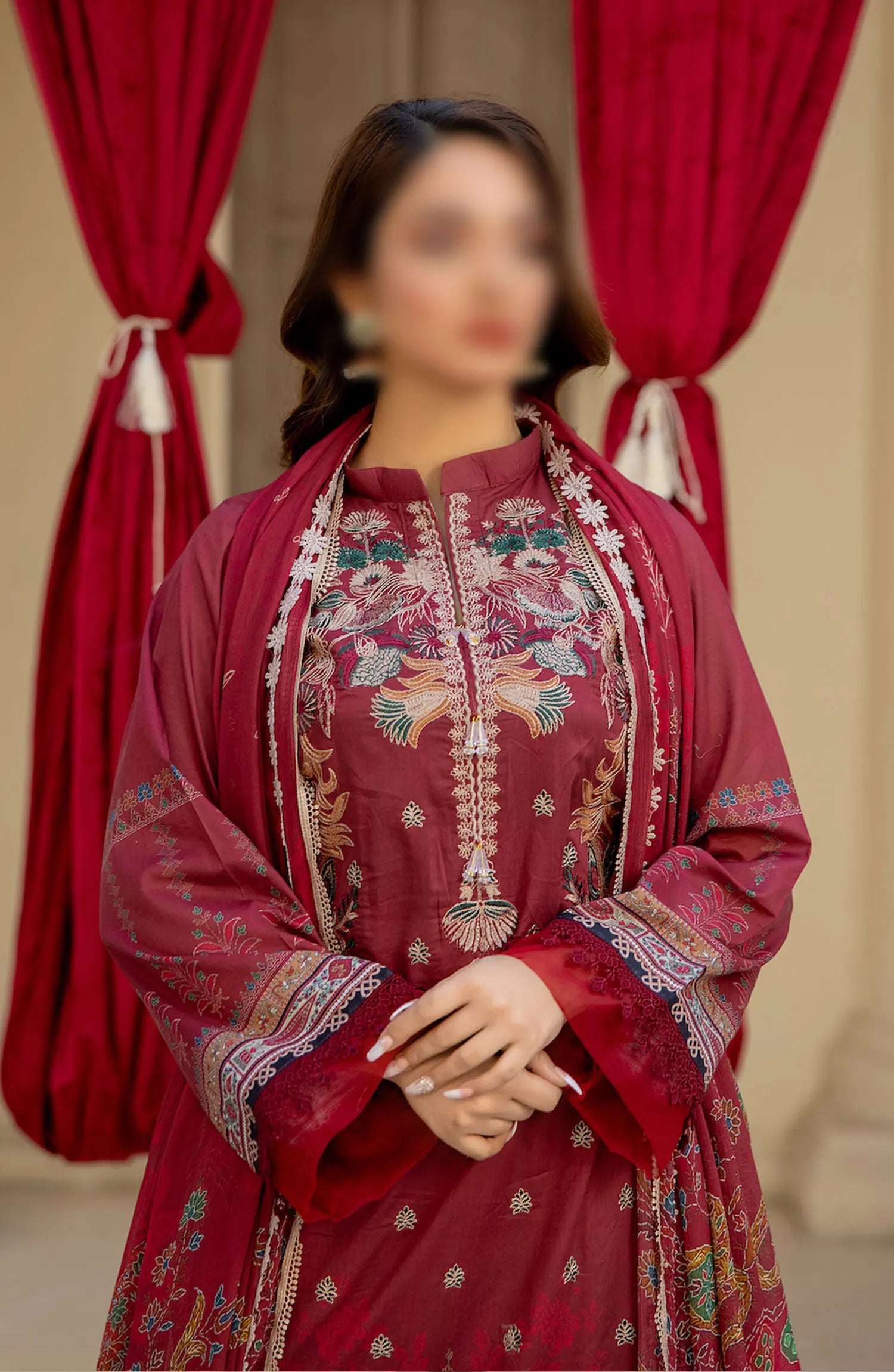 HZ Textile Digital Printed Linen Slub Unstitched 3 Piece Suit - LSD-307 - HZ25LNSL - Red - Winter Collection