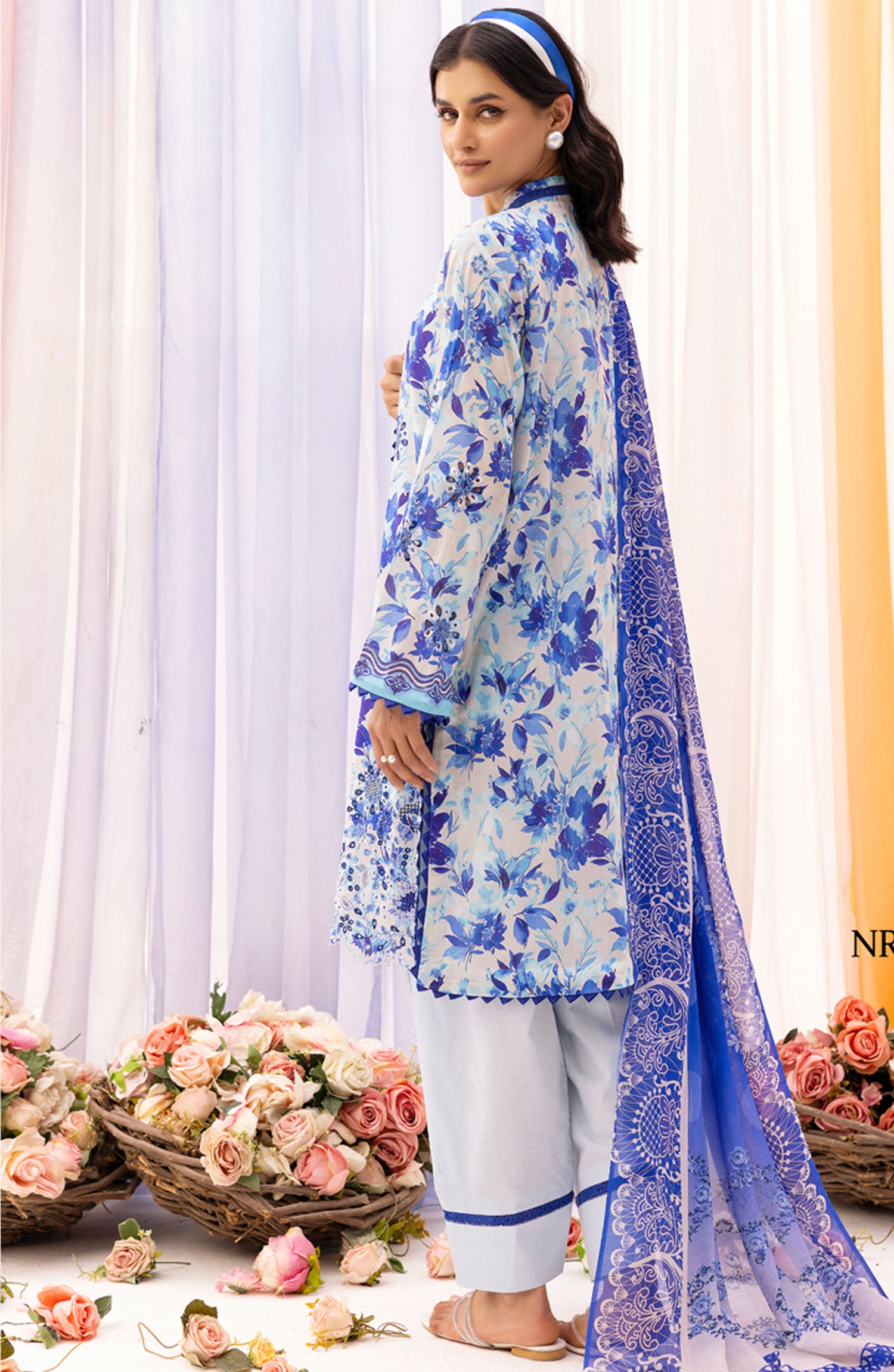 RangRez by NUR Embroidered Lawn Unstitched 3 Piece Suit - NR-404 - NUR25RRL - Blue - Summer Collection