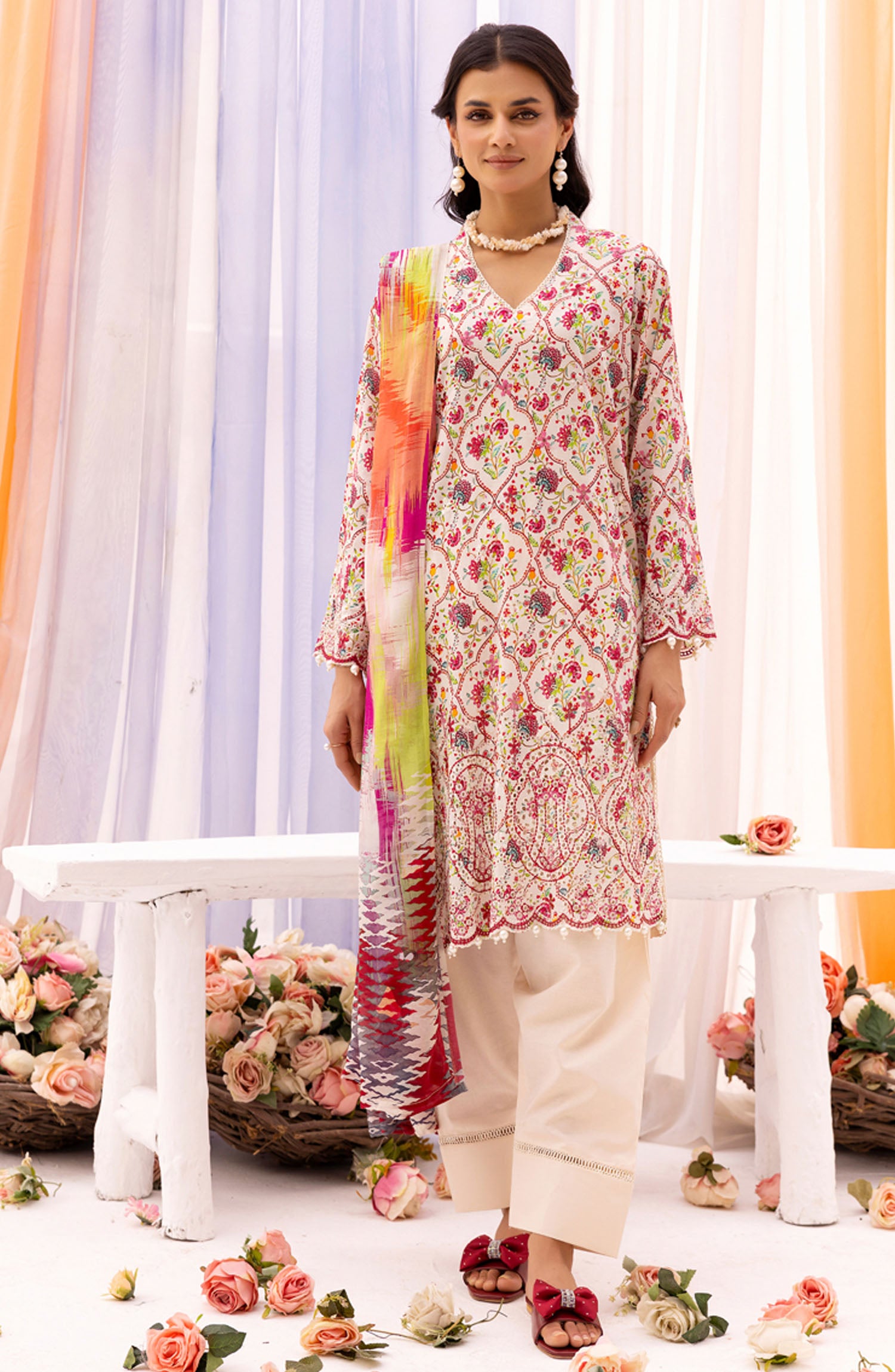 The standard style comes as a long-sleeved kameez with dupatta and trouser/shawlar.
