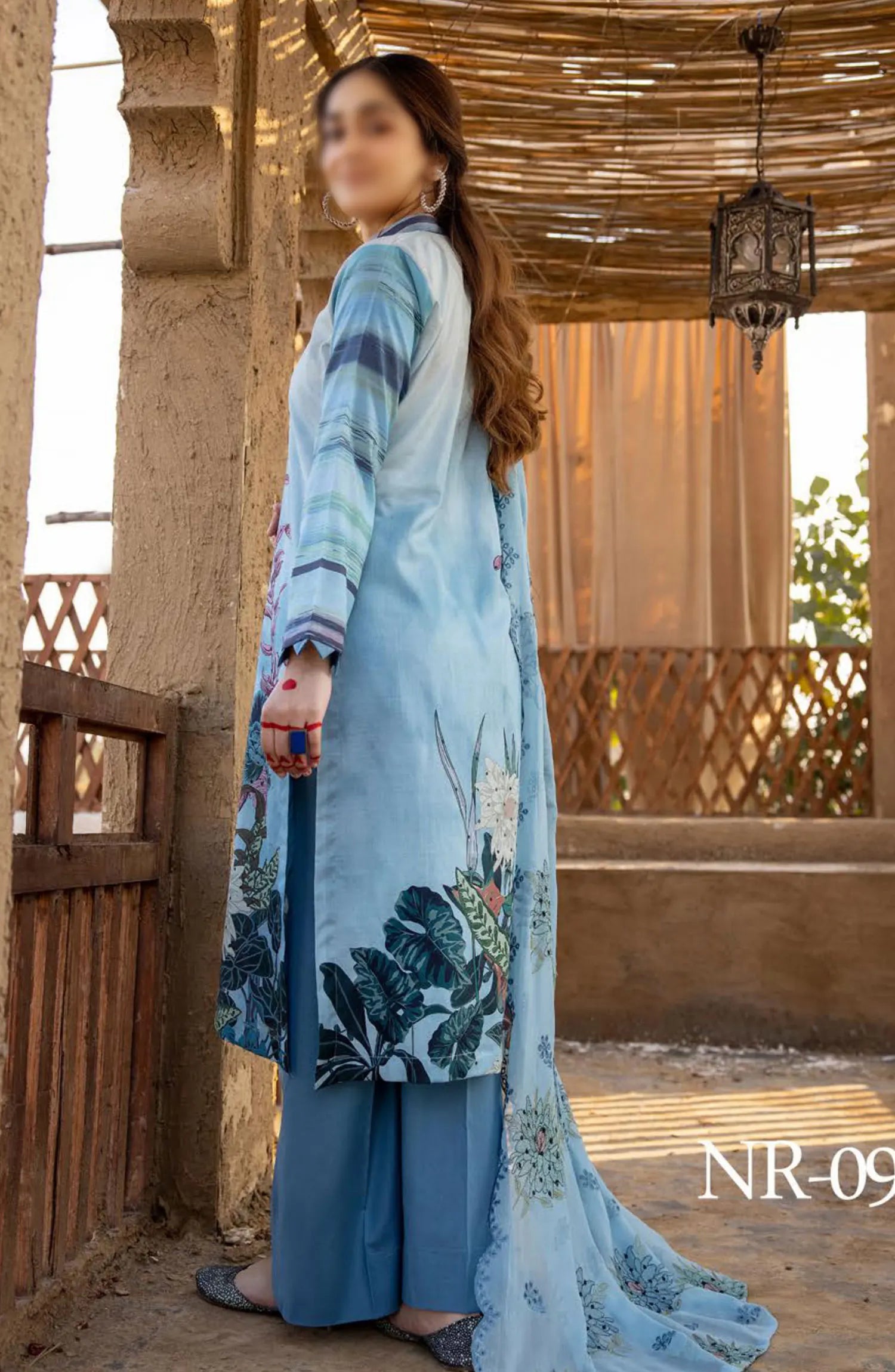 RangRez Printed and Embroidered Lawn Collection has been styled in the image for photography and illustrative purposes.