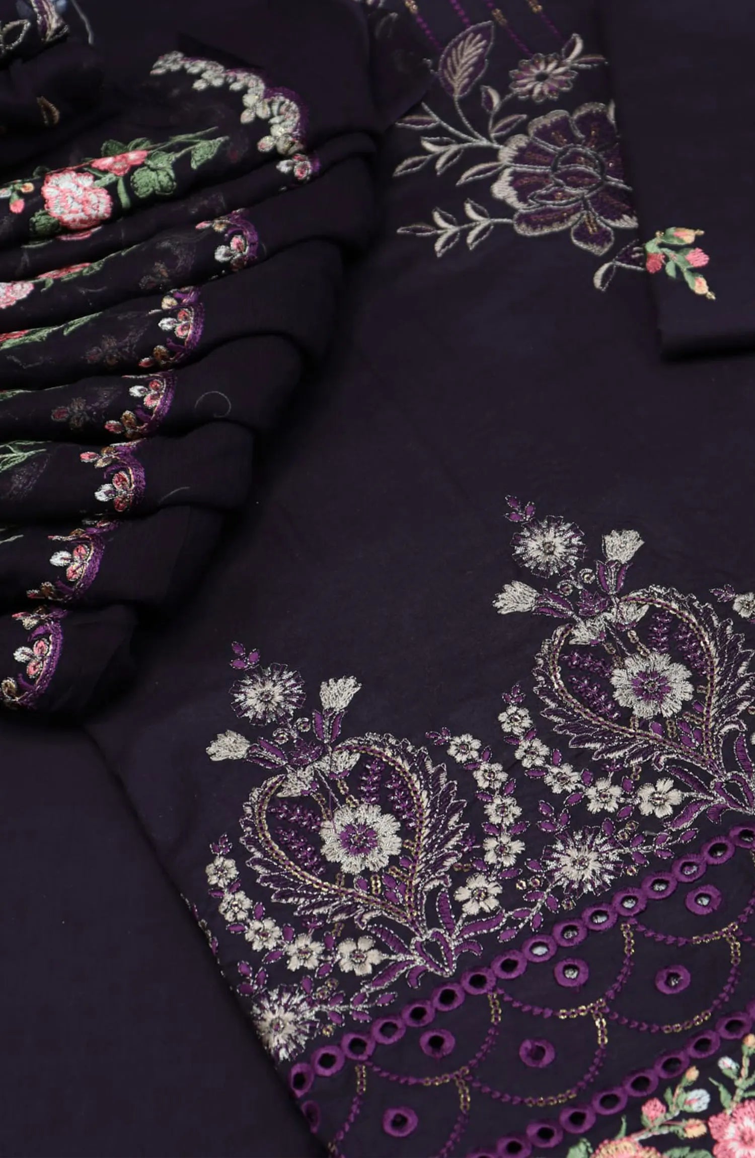 Amna Khadija Embroidered Crinkle Chiffon Unstitched 3 Piece Suit - D-01 - AM25LXC - Blue - Formals Collection