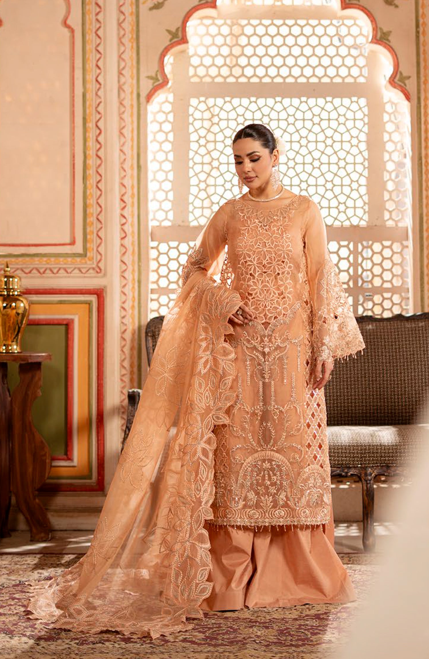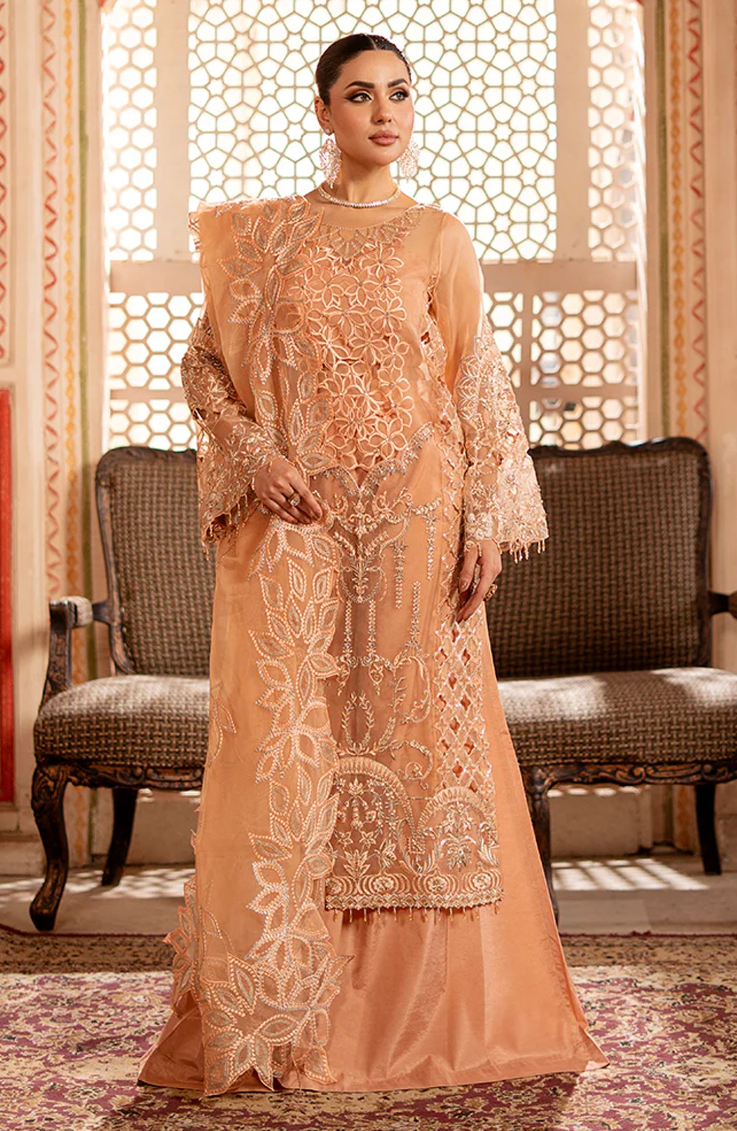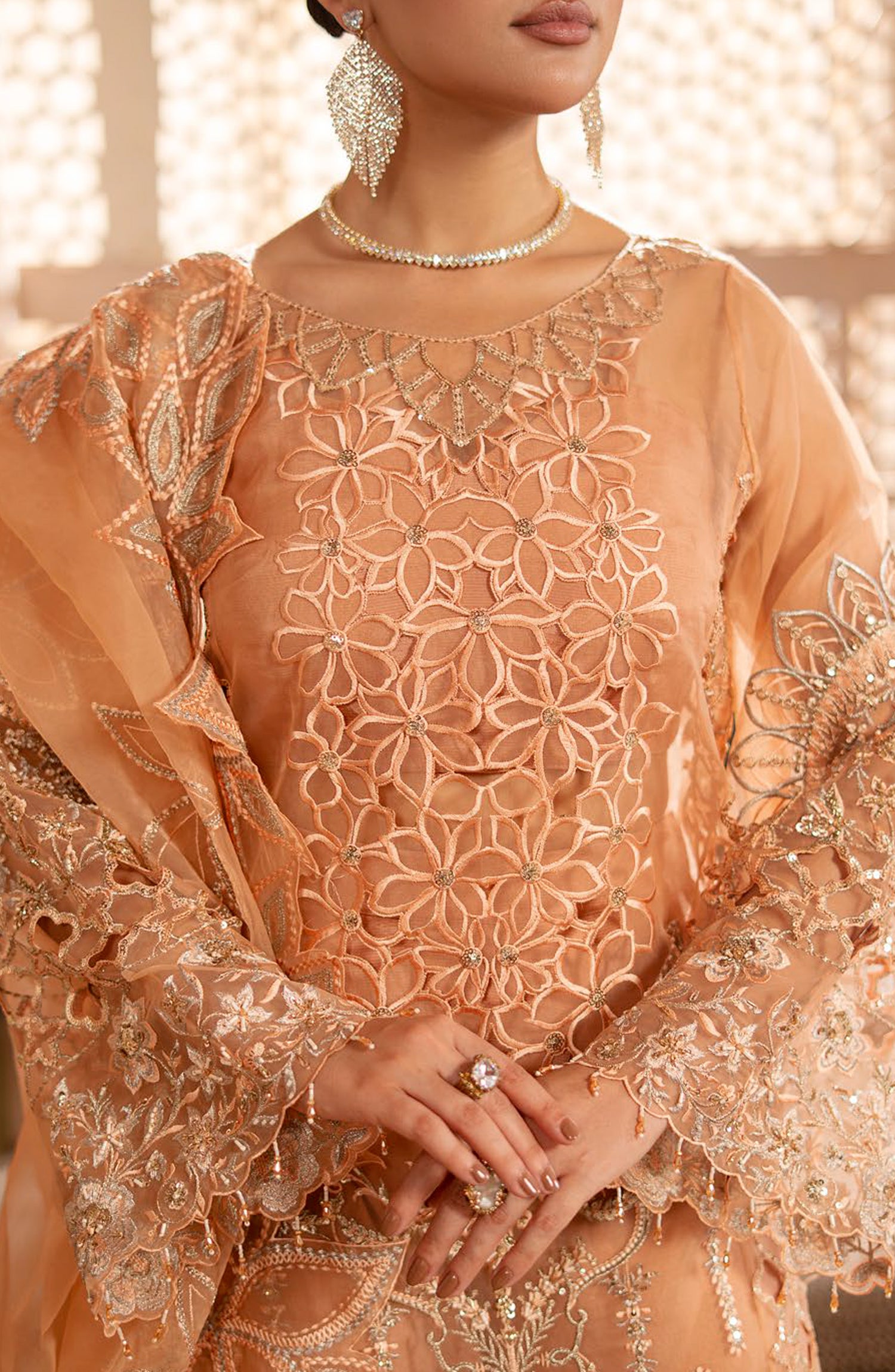 EMBROIDERED ORGANZA FRONT WITH H.M WORK 1 YDS