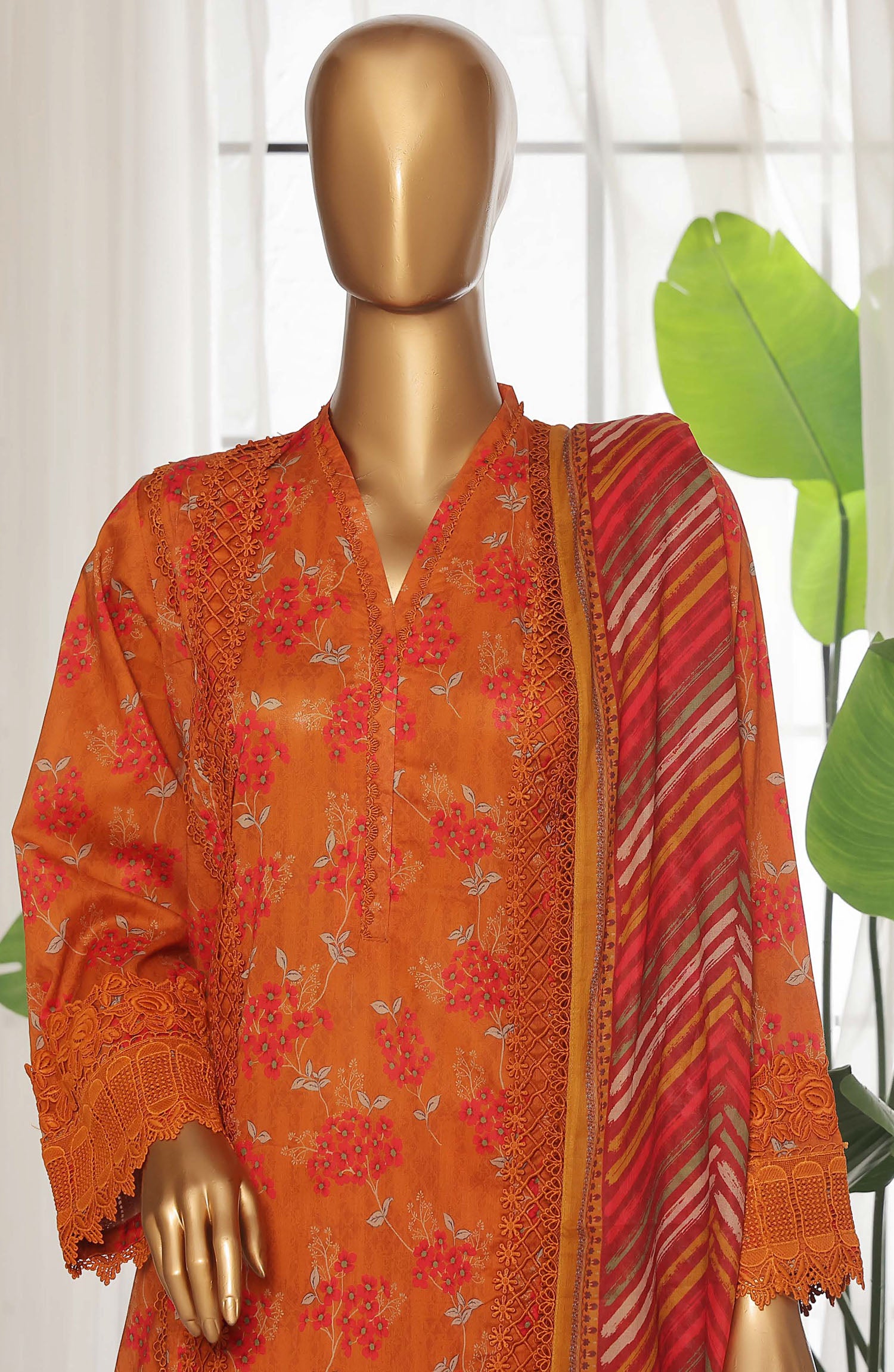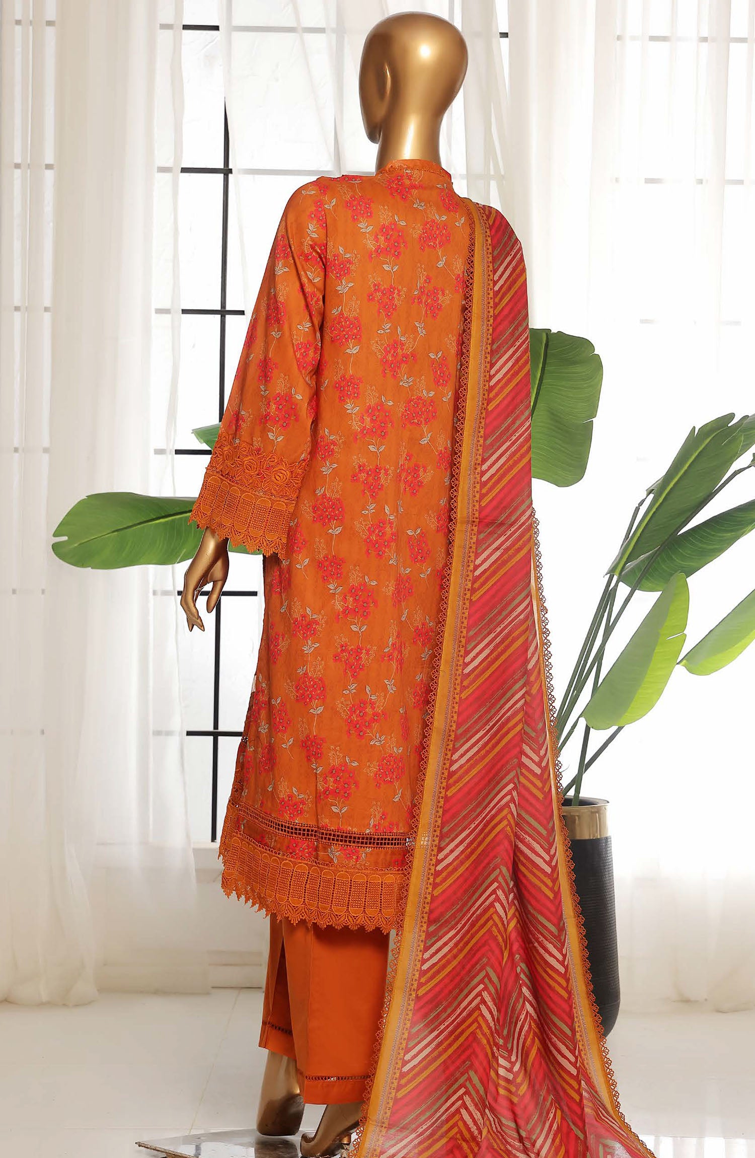 Home Rania by Sadabahar Embroidered Lawn Stitched 3 Piece Suit - D-03 - SBD25REV2 - Orange - Summer Collection