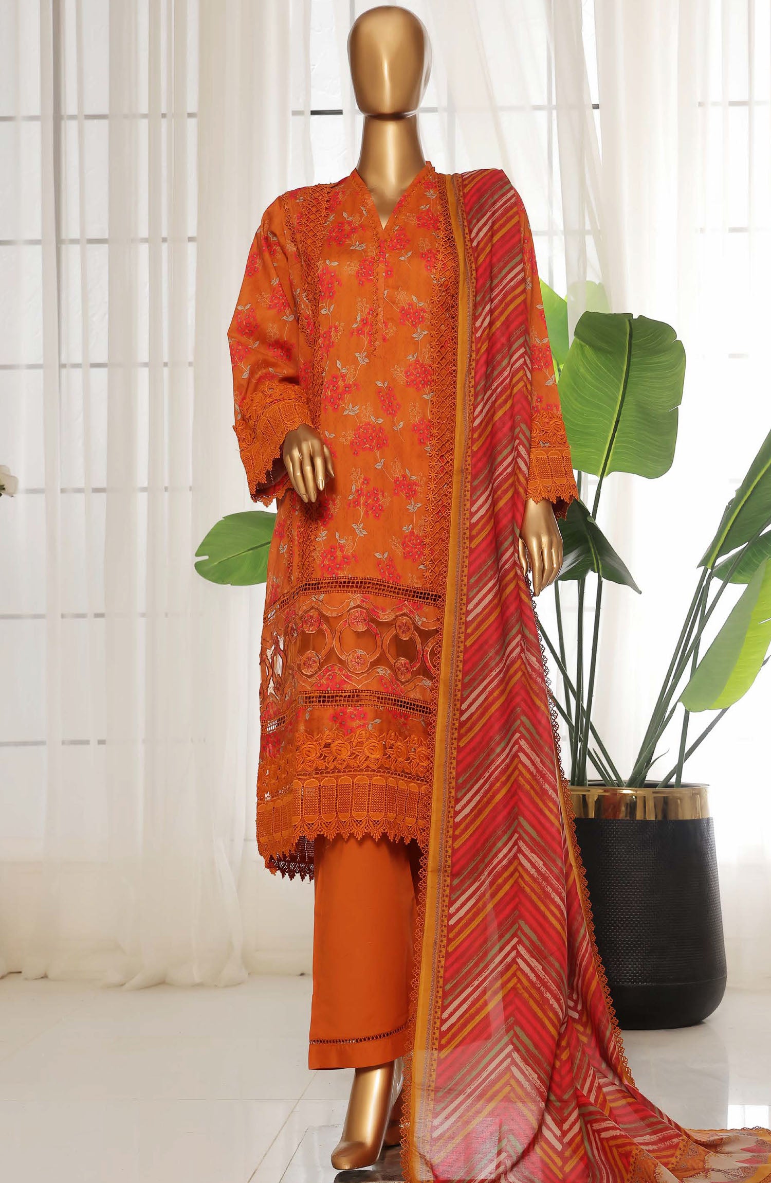 Rania by Sadabahar Embroidered Lawn Stitched 3 Piece Suit - D-03 - SBD25REV2 - Orange - Summer Collection