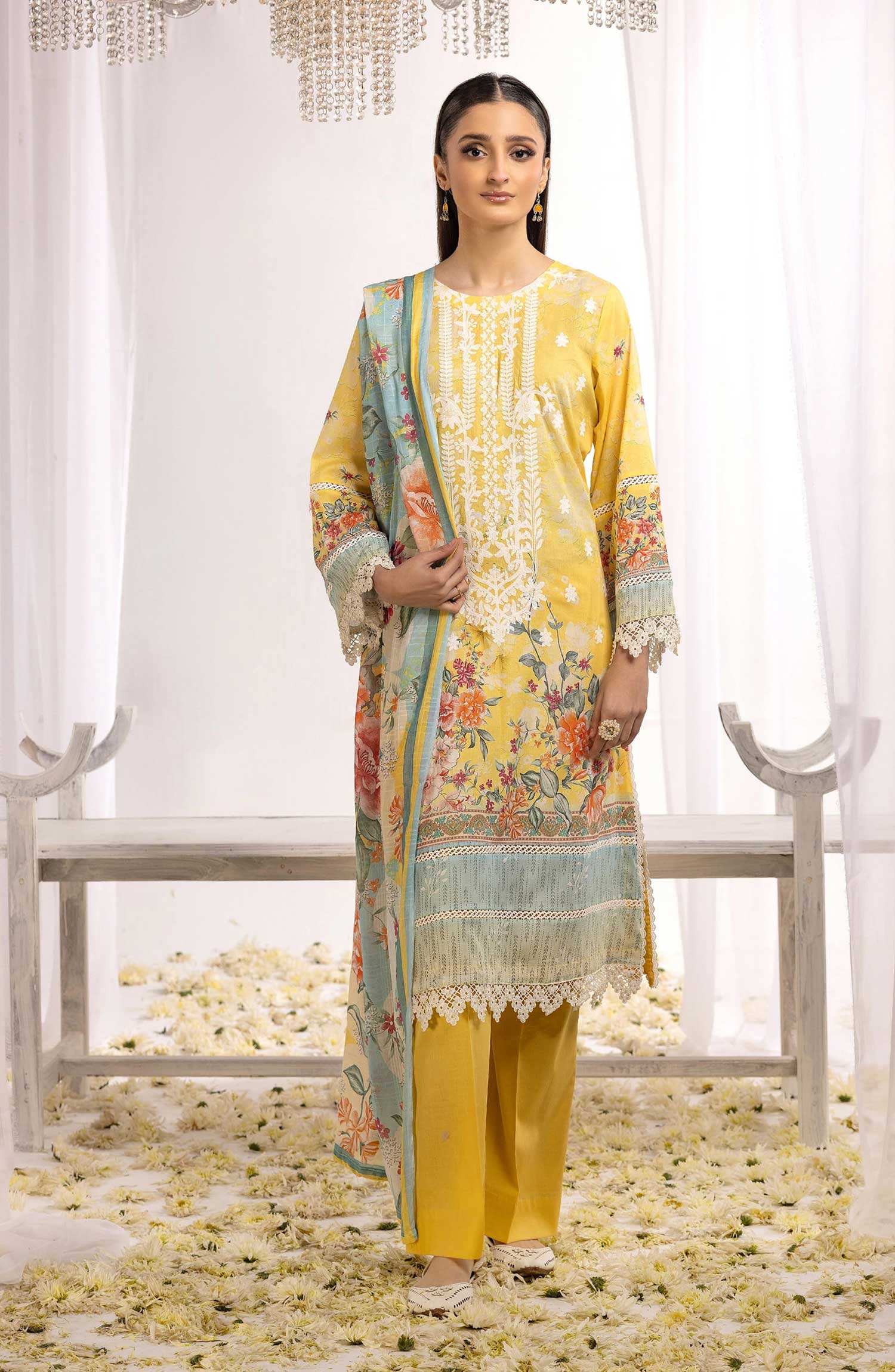 Rawayat Embroidered and Printed Lawn Collection By NUR has been styled in the image for photography and illustrative purposes.