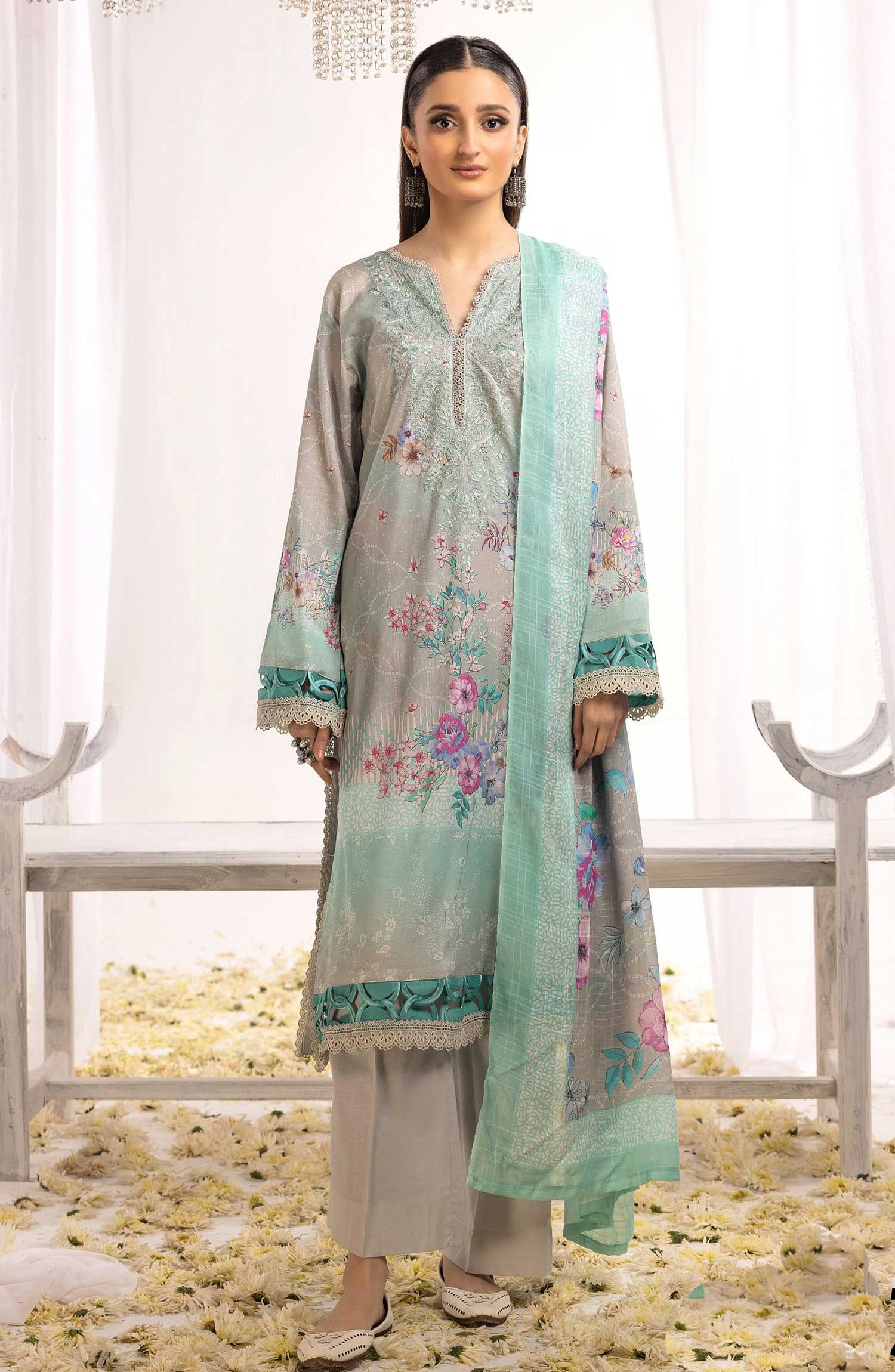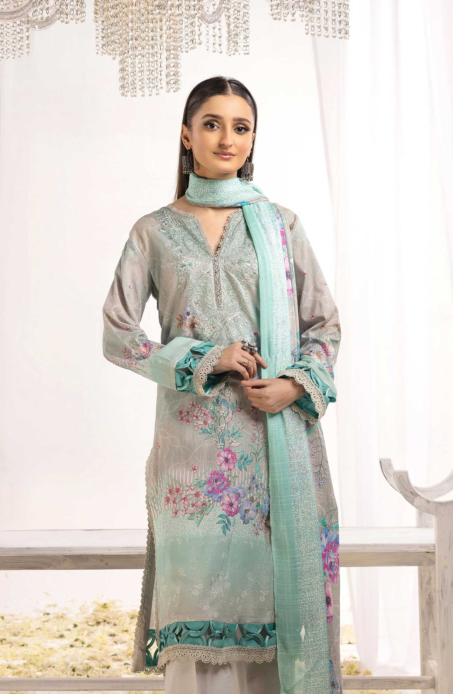 Rawayat Embroidered and Printed Lawn Collection By NUR has been styled in the image for photography and illustrative purposes.
